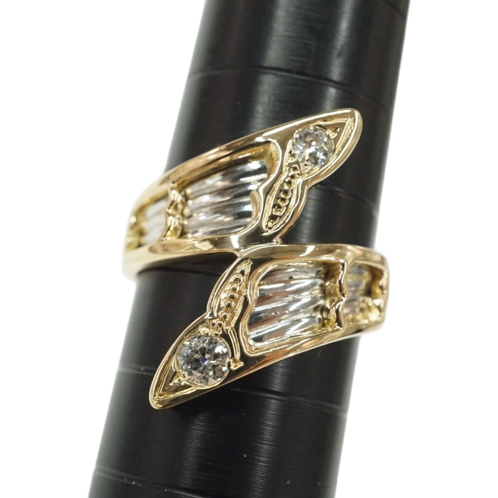 ダイヤモンドが施された存在感のある上品なデザインリングです。 お手元のアクセントにぜひいかがでしょうか。