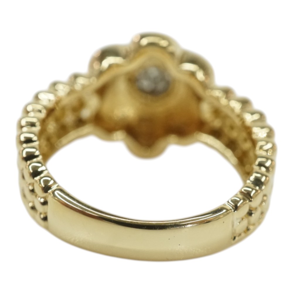 ダイヤモンドが施された存在感のある上品なデザインリングです。 お手元のアクセントにぜひいかがでしょうか。