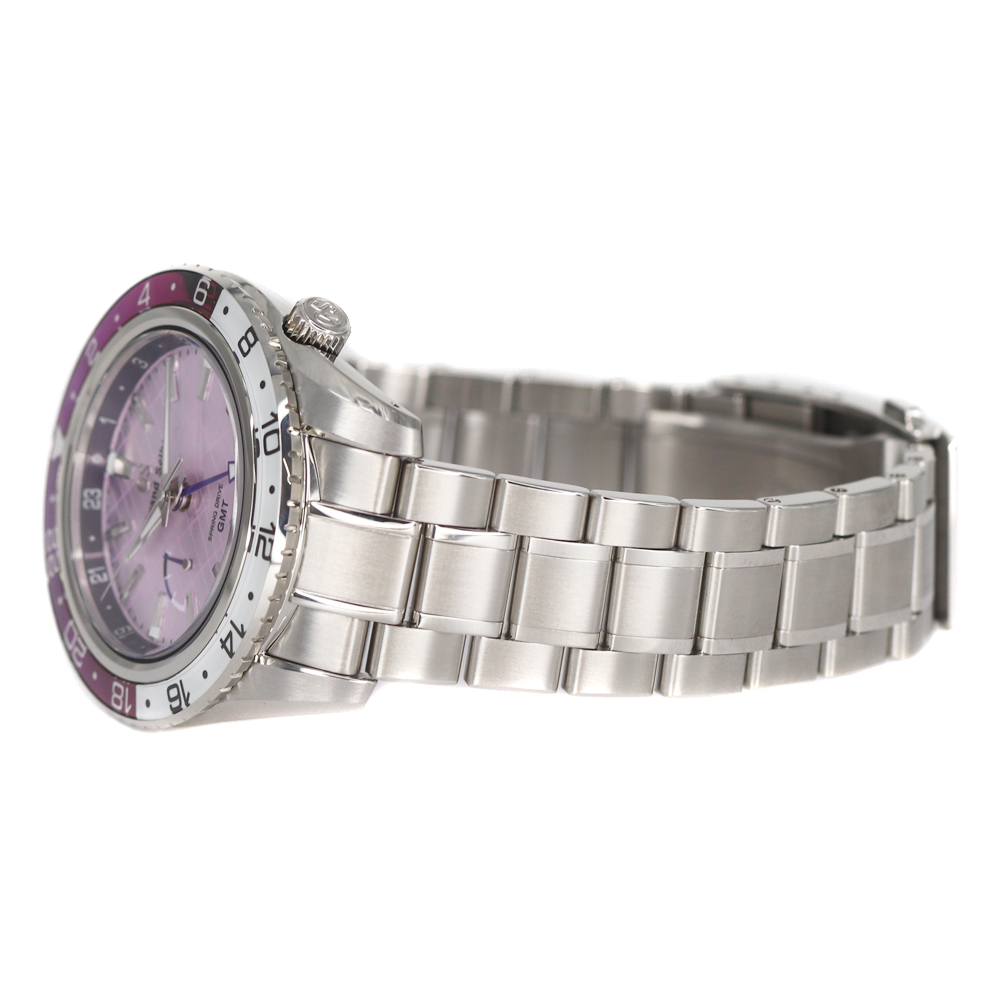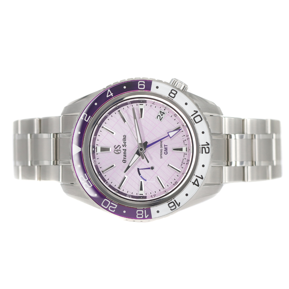 グランドセイコーのスプリングドライブが入荷しました。 銀座限定のモデルです。 伝統と品格の象徴カラー「紫」と「銀座」の情緒を融合したデザインとなっております。 グランドセイコーが誇る「スプリングドライブ」が搭載されており、GMT機能もあるため、回転ベゼルと合わせて3つのタイムゾーンを知ることが出来ます。