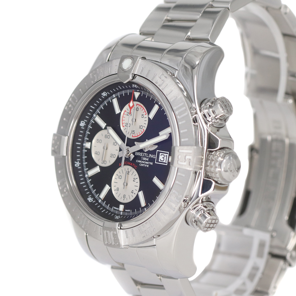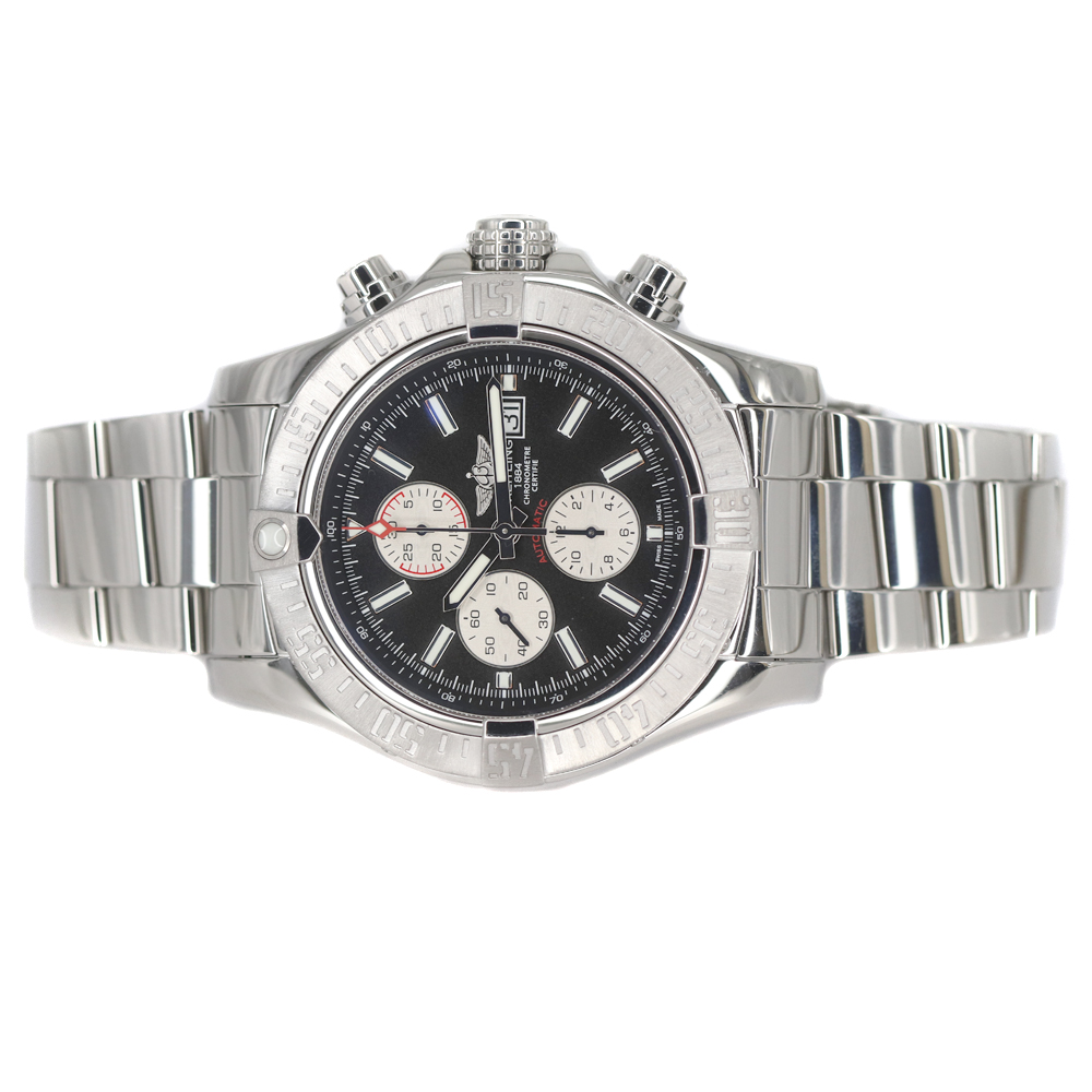 | 仕様 | キャリバー:ブライトリング13 パワーリザーブ:48時間 精度:日差+8~+9秒(平置き) 自動巻き クロノグラフ 防水:300m防水 カレンダー表示 逆回転防止ベゼル |