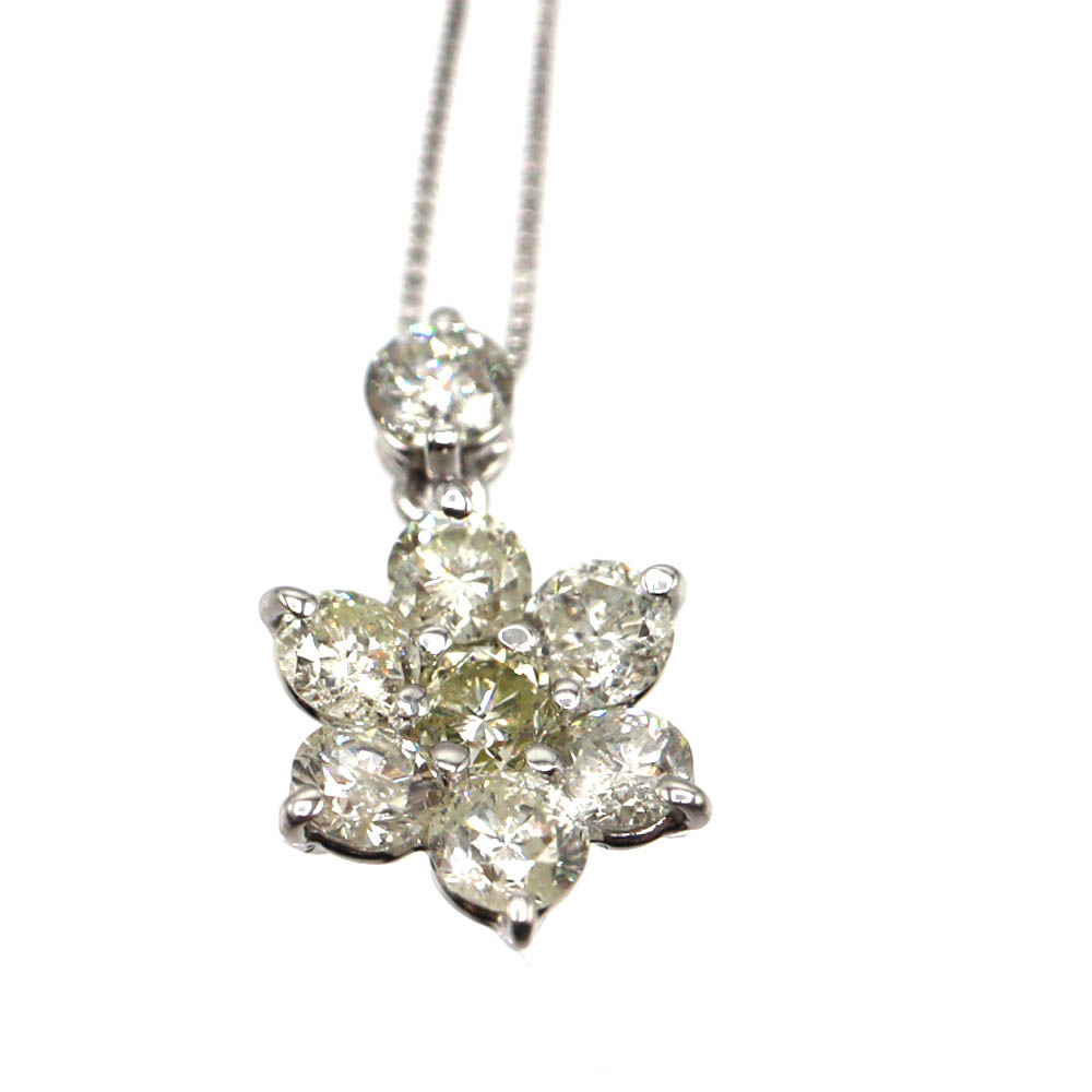 トップには合計1.00ctのダイヤモンドをあしらい、上品でありながら存在感のある輝きが胸元を華やかに演出します。