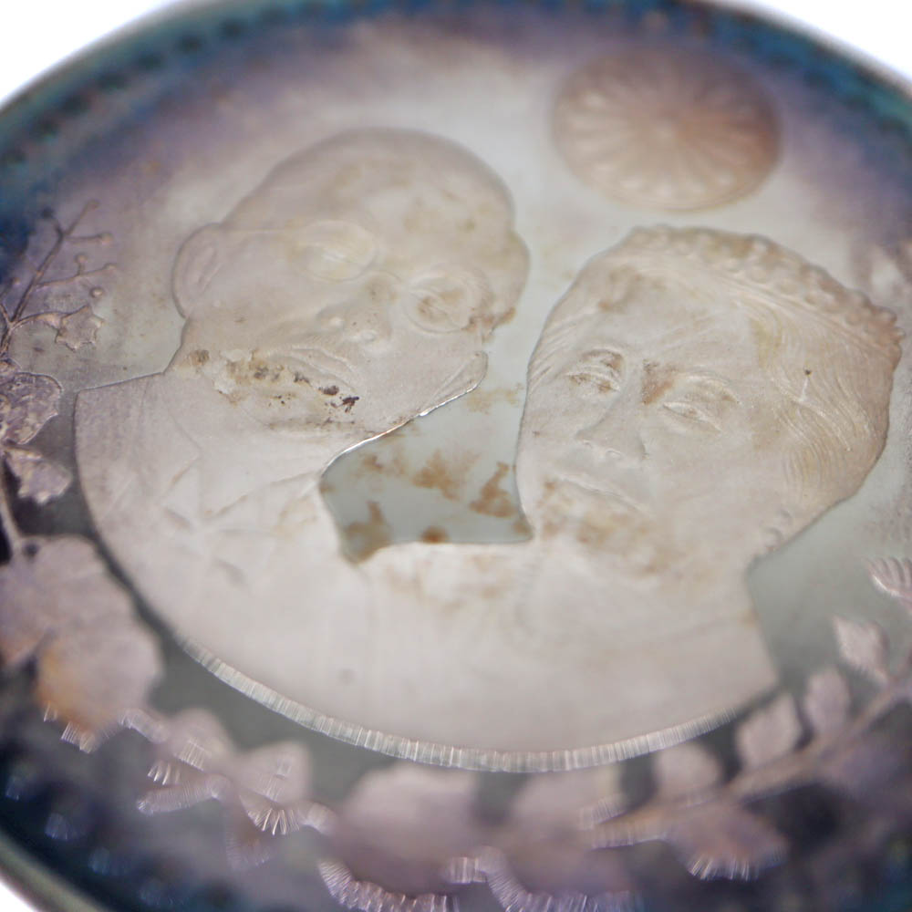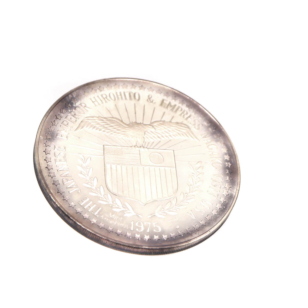 | 商品説明 | ■天皇皇后両陛下の御来米を記念して発行された、純銀(SV1000)製の記念メダルです。