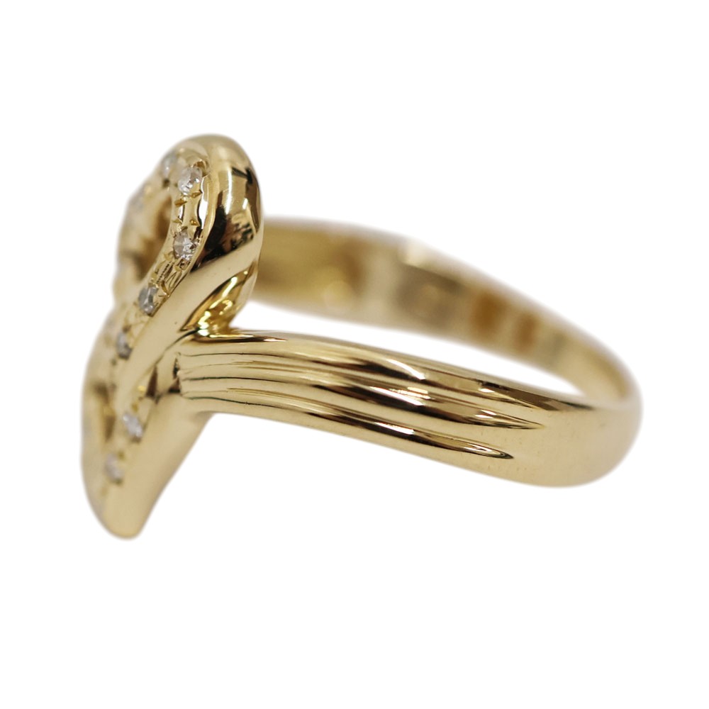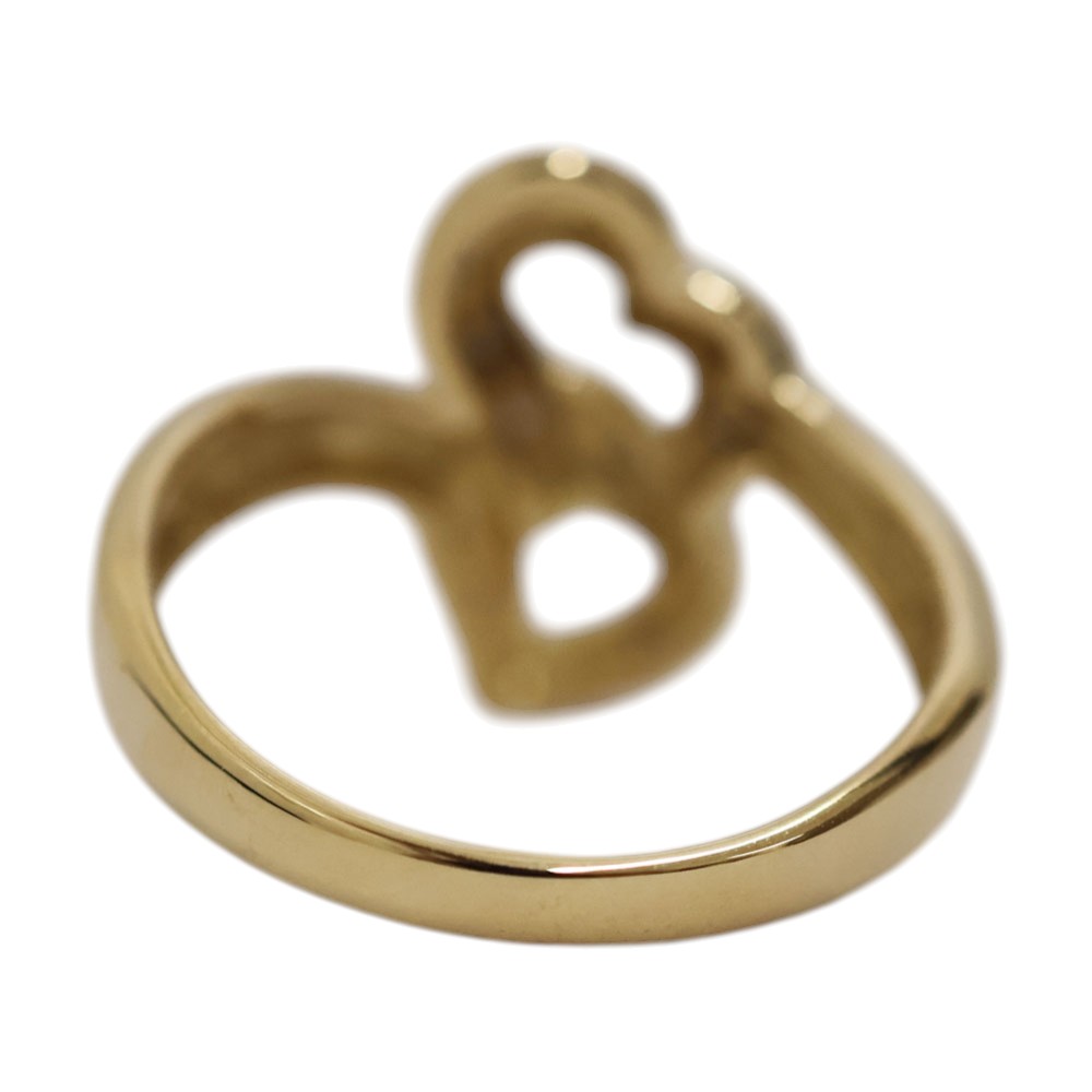 オープンハートを思わせる曲線的なモチーフが重なり合い、女性らしい柔らかさと立体感を演出してくれます。 ハート部分には小粒のダイヤモンドがセッティングされており、繊細なきらめきを放ちます。 この機会に是非いかがでしょうか。