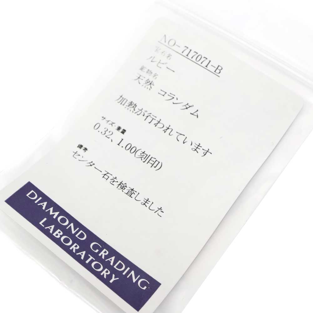 | 素材 | K18【18金】 ルビー:0.32ct ダイヤモンド:1.00ct |