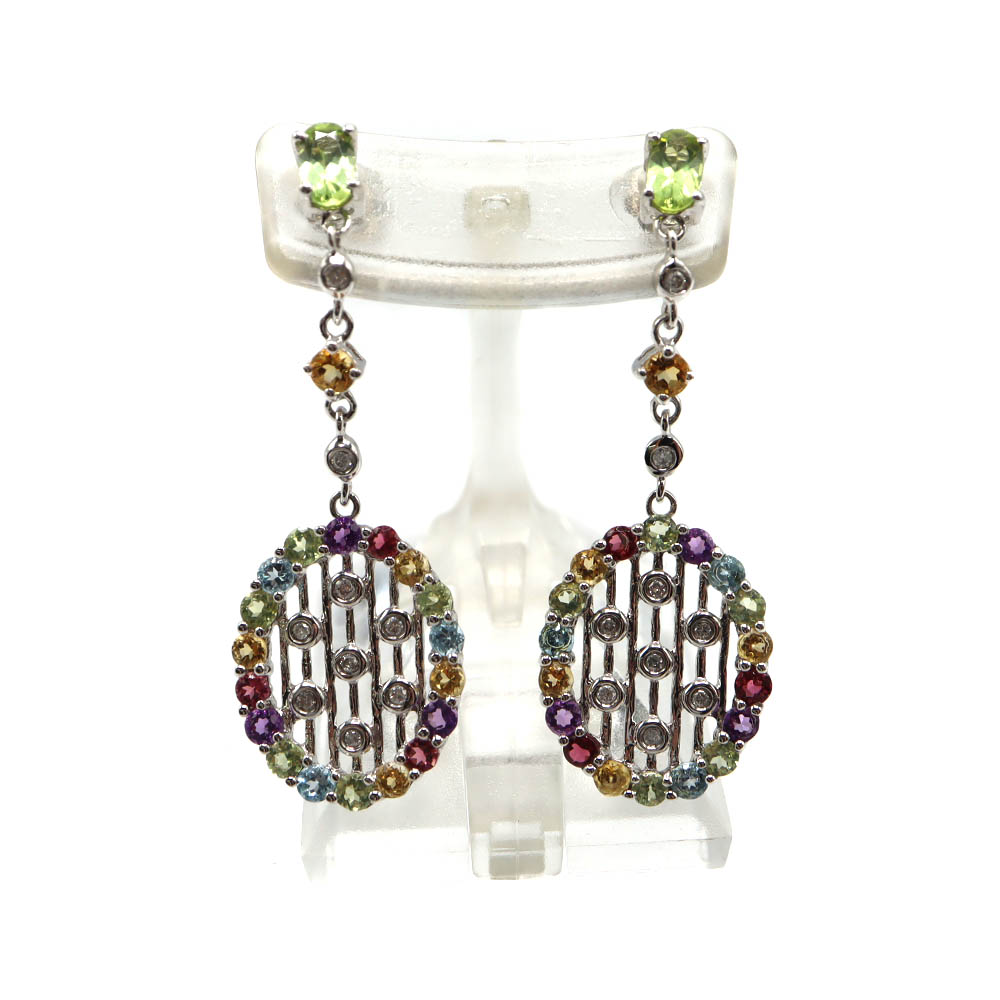 | 商品説明 | K10WGカラーストーン付ピアスのご紹介です。 【K10刻印有】 カラフルなストーンとダイヤモンドが揺れる可愛らしいデザインのピアスです。 ※1マス、1cm×1cmのマスの上で撮影しています。 ※当店にて【新品仕上げ】済ですが取り切れないキズが残っていることがございます。