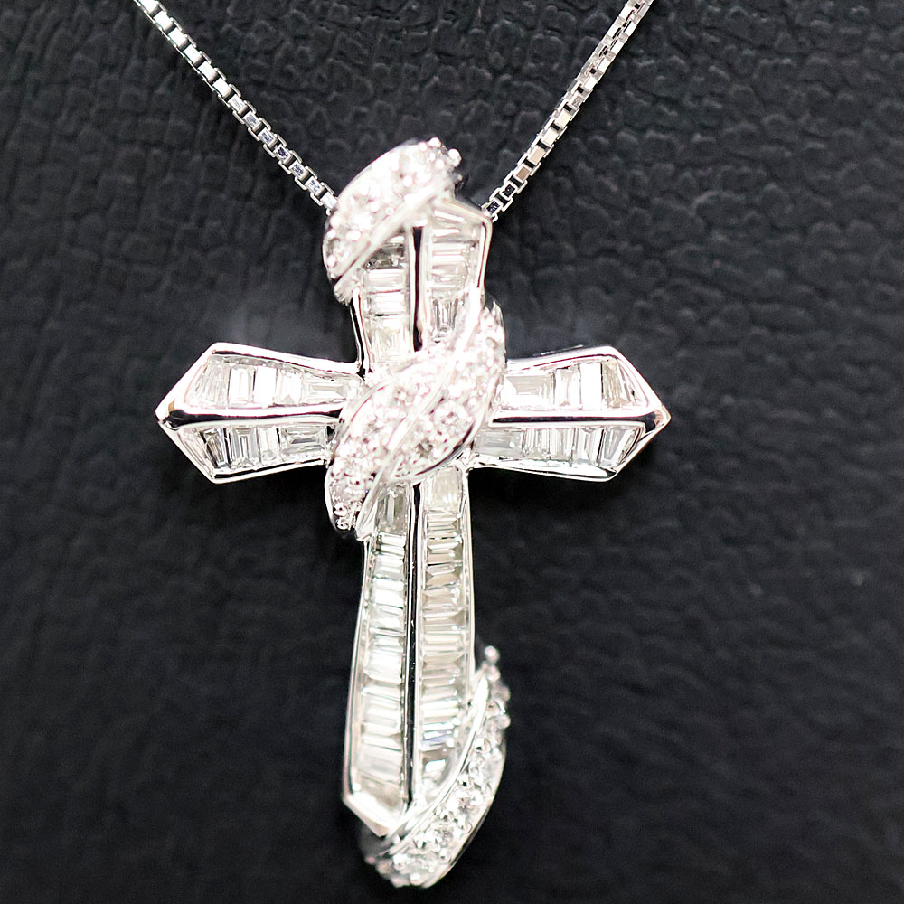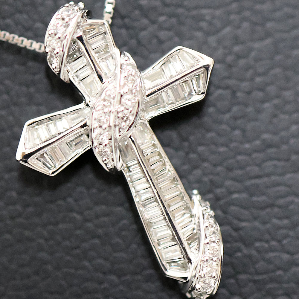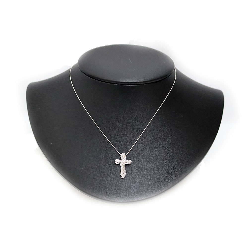 長く愛用できる十字架モチーフは年代問わず大変人気のデザインです。 バケットカットのダイヤモンドがセッティングされ輝きが神々しいです。 首元が華やかに見えますので是非いかがでしょうか。