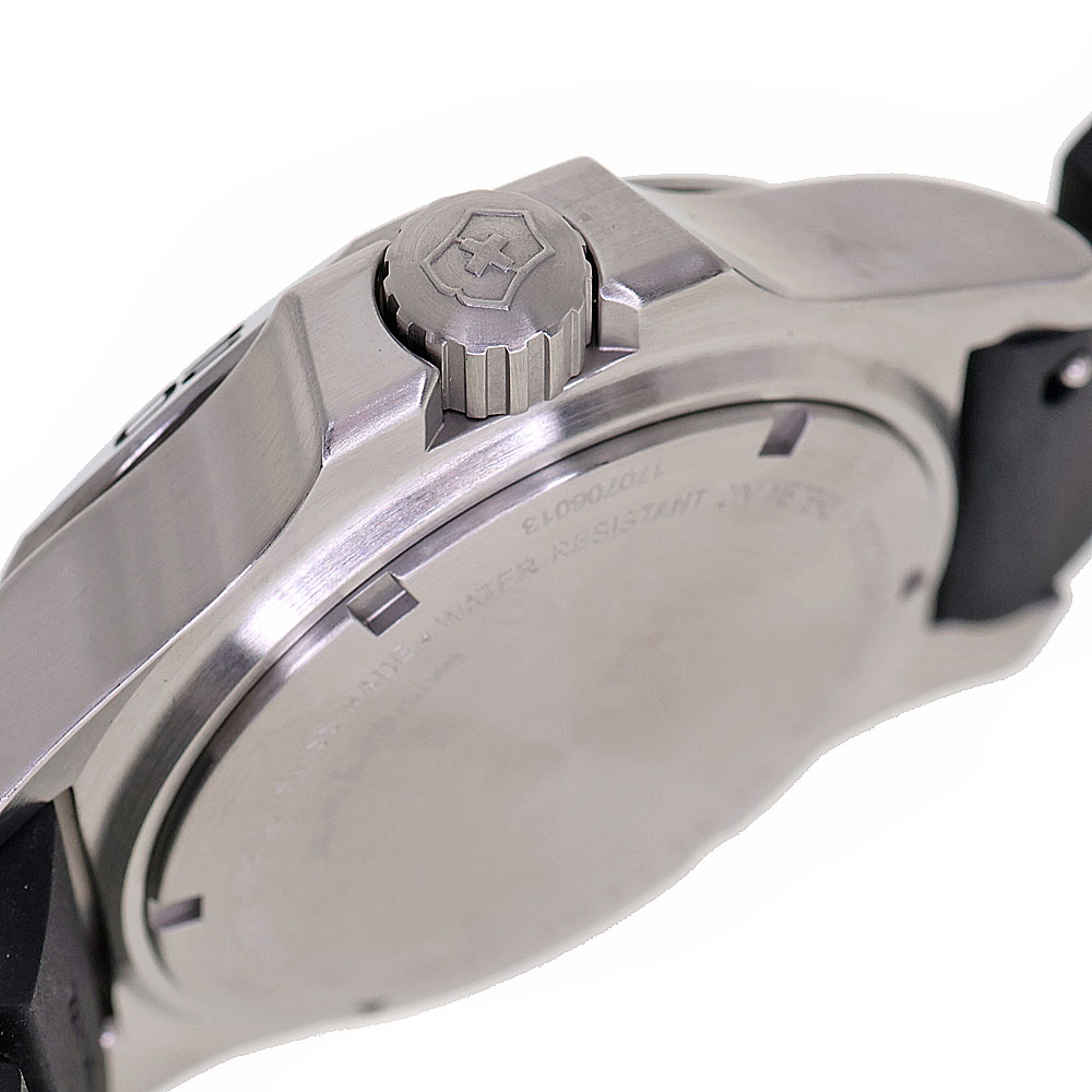 Victorinox 249123は、スイスの老舗ブランドが展開する I.N.O.X. Professional Diverシリーズのダイバーズウォッチ。 300m防水性能とISO規格に準拠した本格仕様を備え、 過酷な環境下でも高い信頼性を発揮する。 ステンレスケースとサファイアクリスタル風防により、 耐衝撃性・耐傷性に優れ、逆回転防止ベゼルや高輝度の夜光インデックスによって 水中での視認性も確保。アウトドアやマリンスポーツだけでなく、 日常使いにも適したタフネスウォッチです。