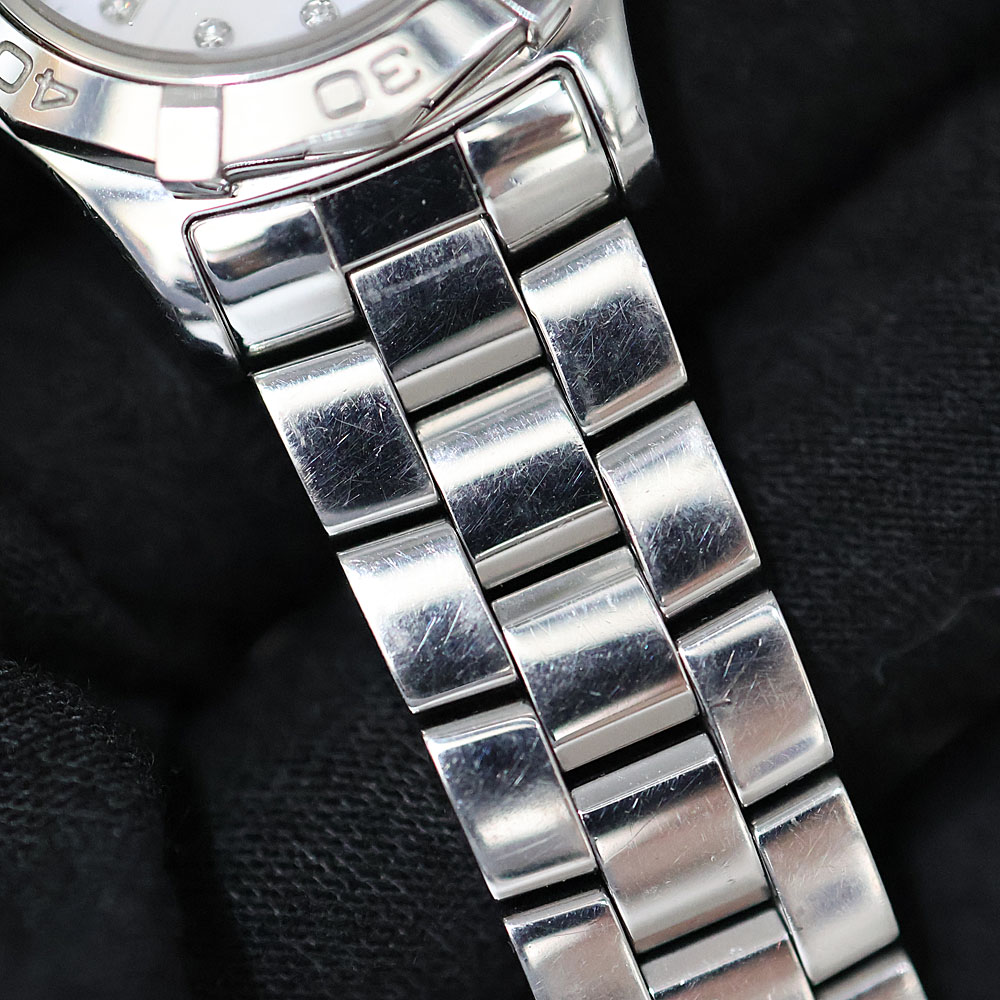 防水性やスポーティーなデザインで、 普段使いに便利な「アクアレーサー」のレディースモデル。 光り輝くホワイトシェルダイヤルはどのようなコーディネートにも 合わせることができ、ダイヤルにはダイヤモンドがセッティングされ、 華やかな雰囲気を演出します。