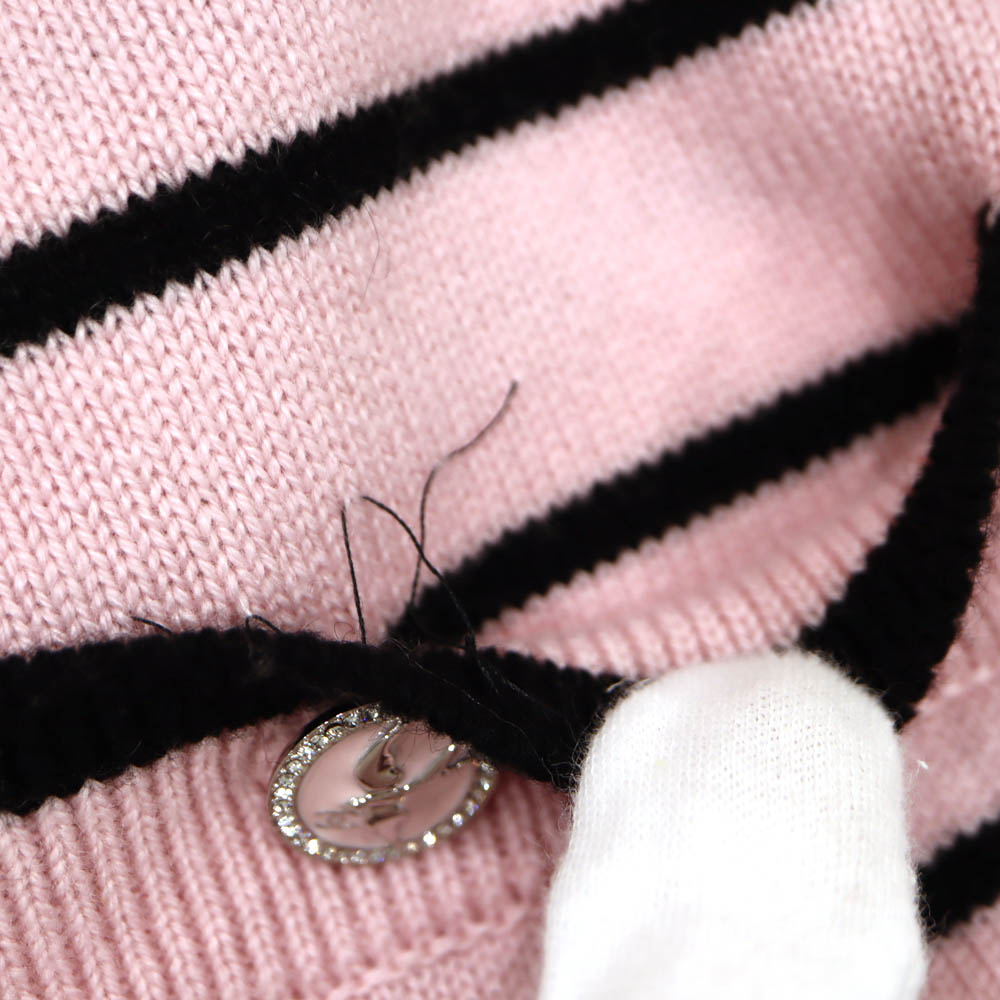 | 商品説明 | CHANEL【シャネル】「ニットカーディガン」のご紹介です。 ピンク×ブラックのボーダーカラーでコーディネートの主役になります。 ツバメが描かれた艶やかなボタンにストーンがきらきらと輝きたいへん上品です。 |