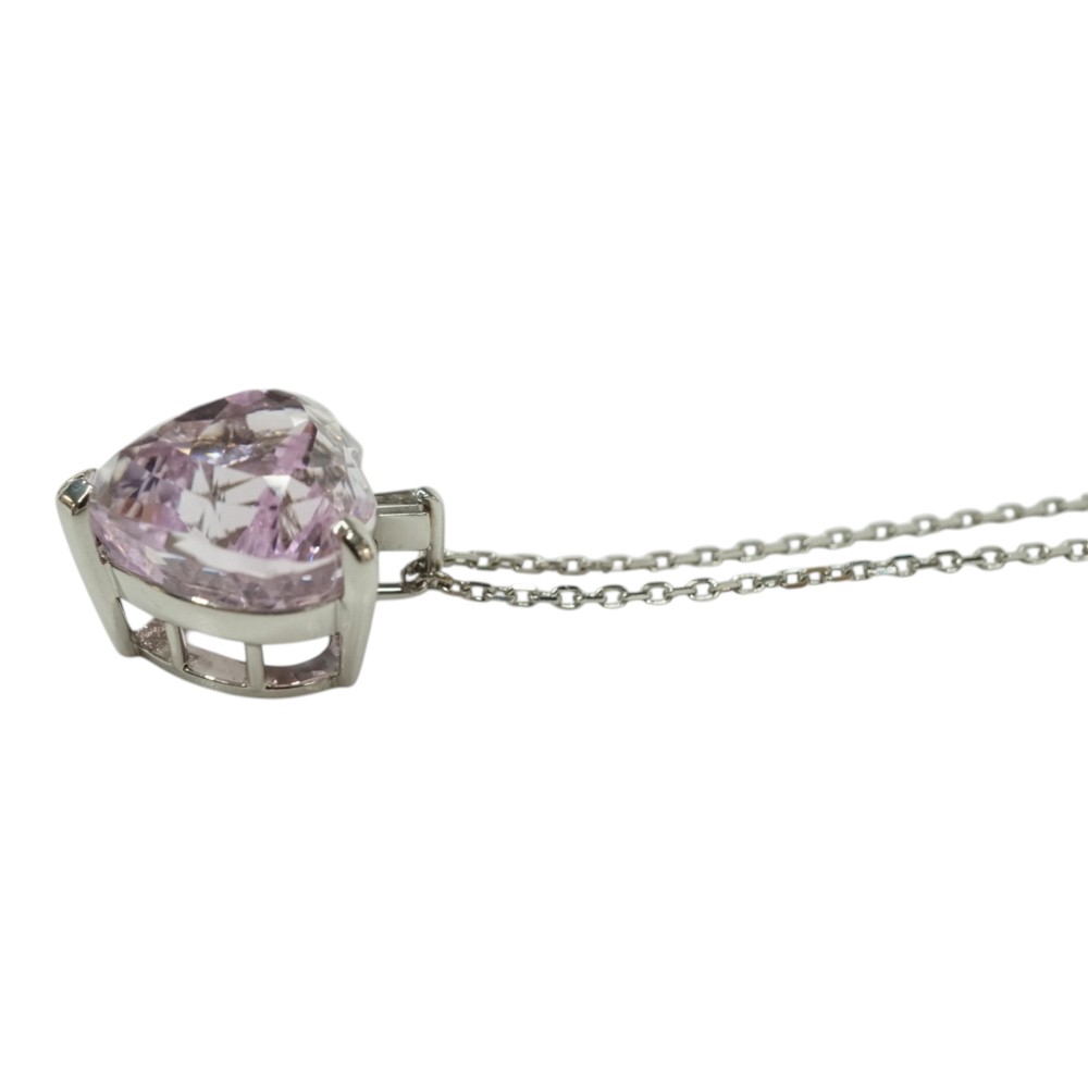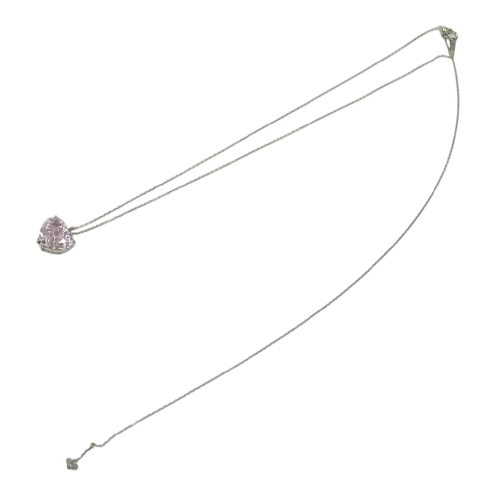 クンツァイトが綺麗に輝くハート型デザインで程よい存在感あるネックレスです。 首元のアクセントにいかがでしょうか。