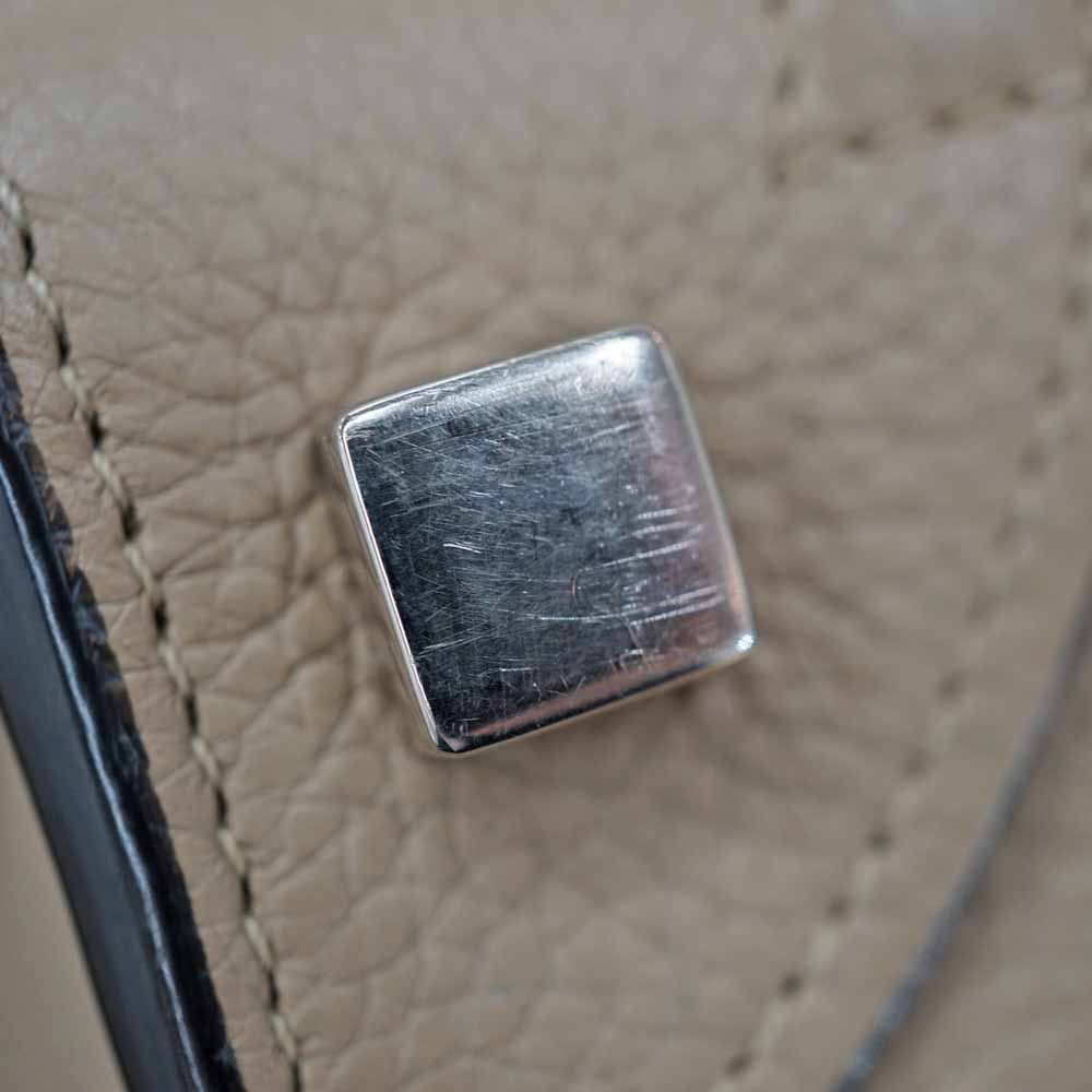 | 商品状態 | ■金具小キズ ■ハンドル型崩れ、黒ずみ、汚れ、コバ割れ ■レザーに擦れ、汚れ、剥げ ■内側に毛羽立ち、汚れ ■角スレ ■店頭でも販売しているため、画像にないキズ等が付く可能性がありますので予めご了承くださいませ。 |