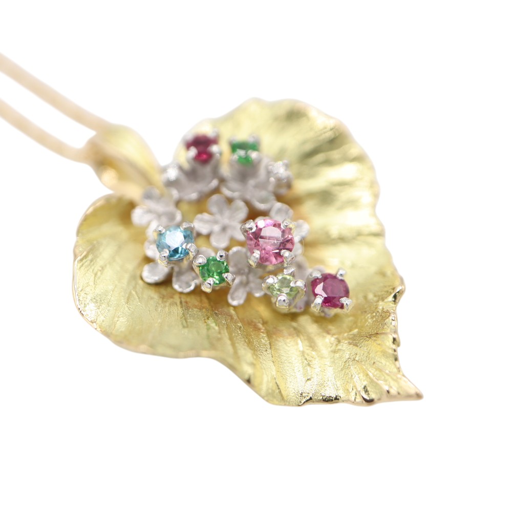 | 商品名 | K18YG×14WGカラーストーンリーフネックレス |