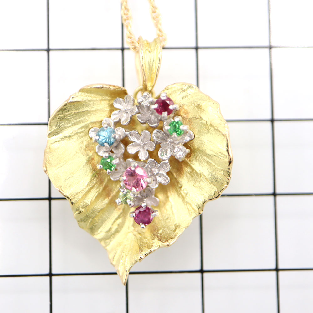 | 商品説明 | K18YG×K14WGカラーストーンリーフネックレスのご紹介です。