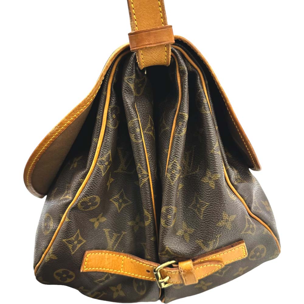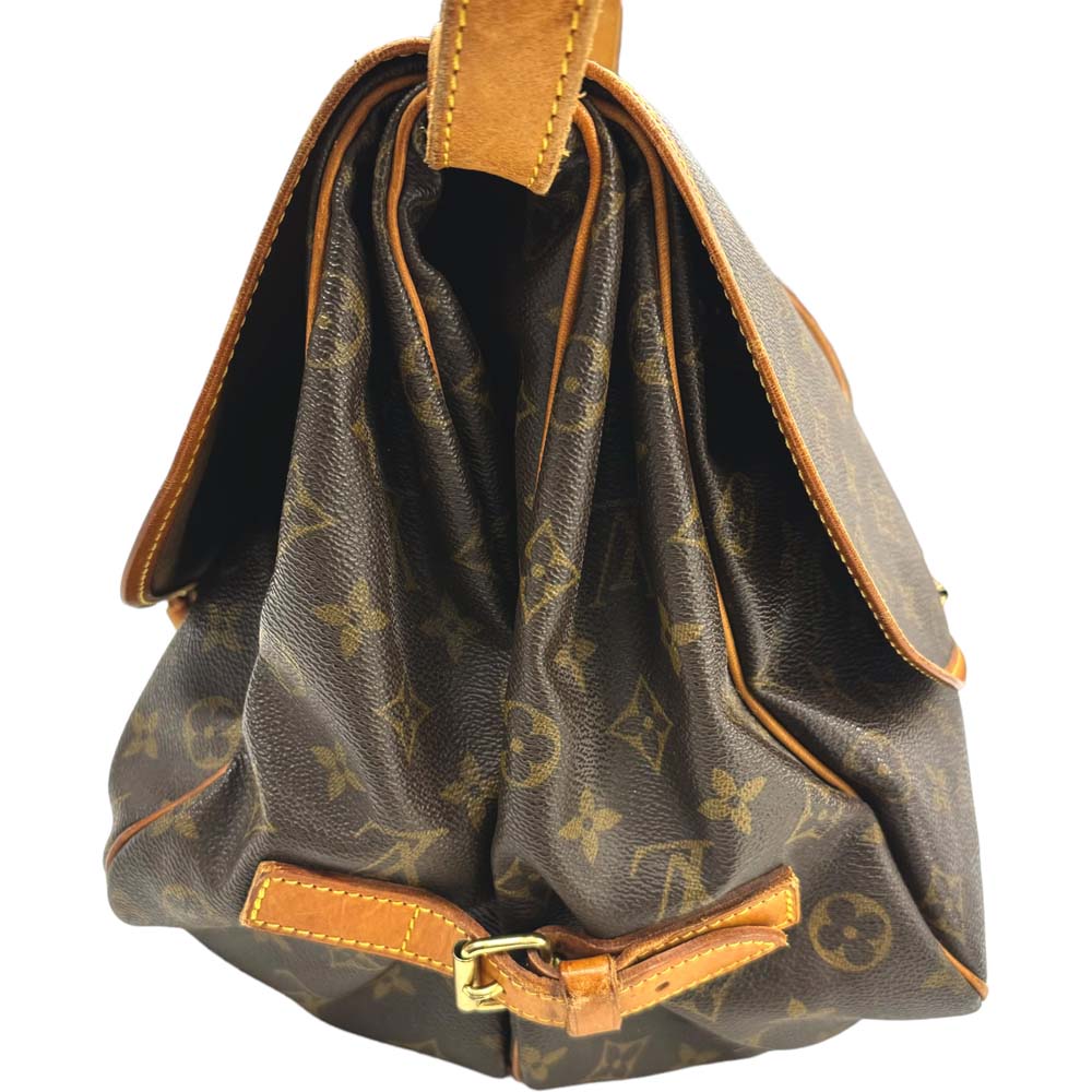 | 商品説明 | モノグラムキャンバスにヌメ革のアクセントが映えるソミュール35は、ベルト付きショルダータイプで日常のスタイリングに馴染みます。前後に分かれたマチとサイドベルトで収納が調整可能な設計により、実用性も優れています。両室にオープンポケットを搭載し整理しやすく、ワンハンドルで肩掛けも斜め掛けも可能な快適な仕様です。年代や性別を問わず使いやすいデザインで、長く愛用できる一品です。 |