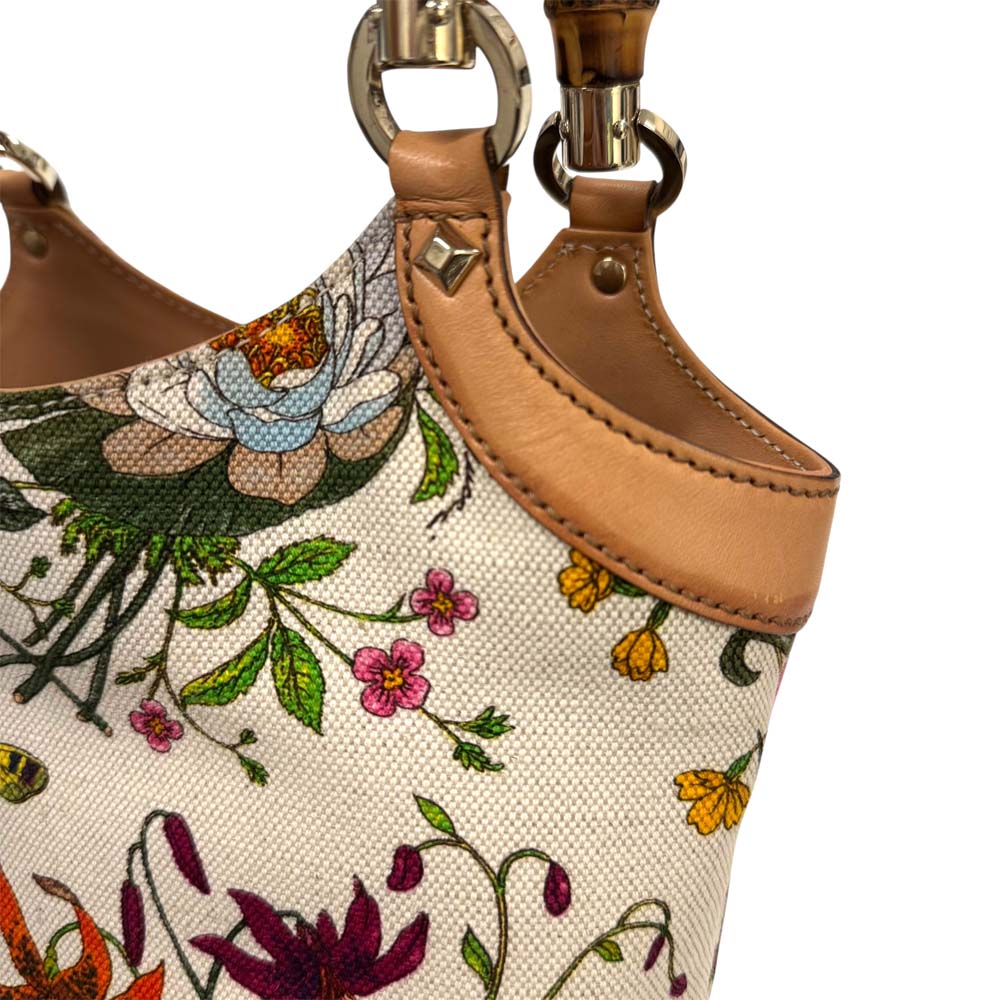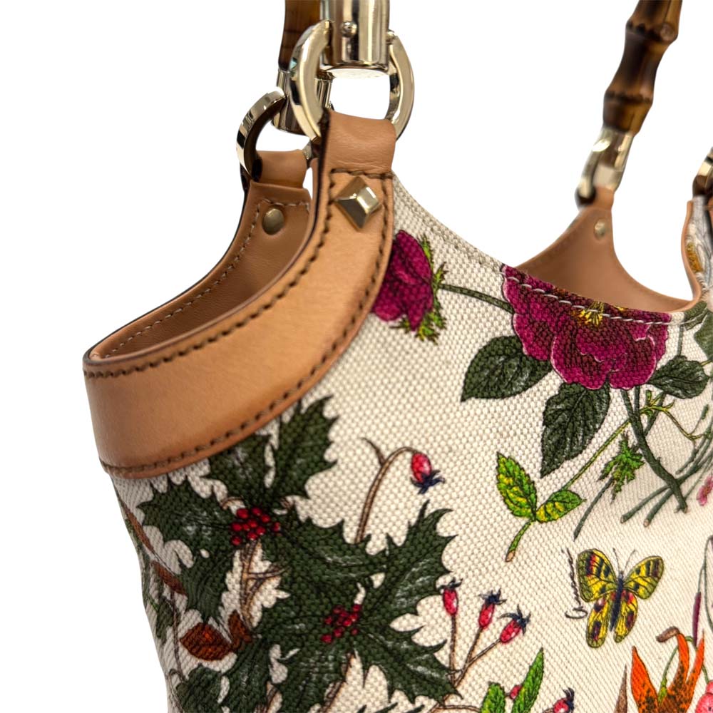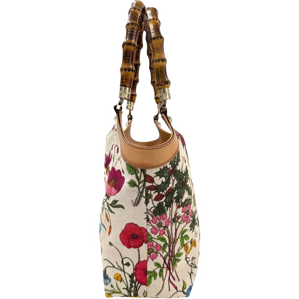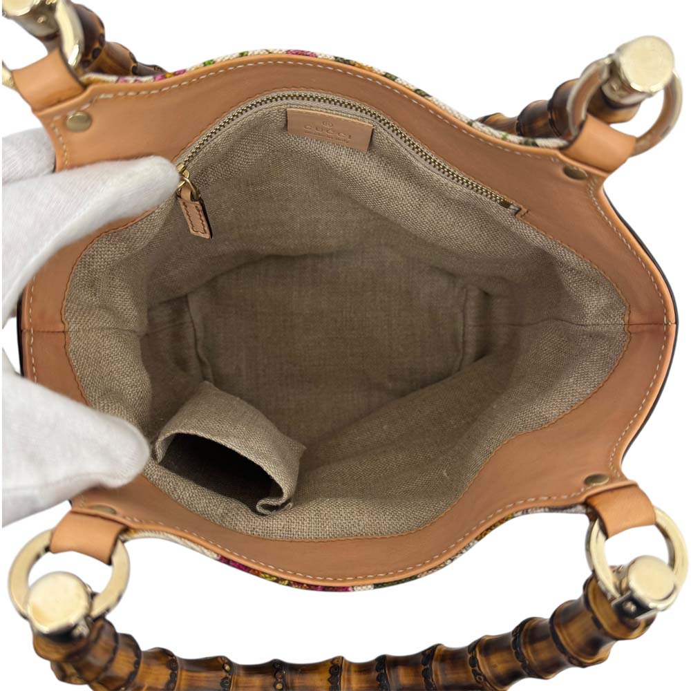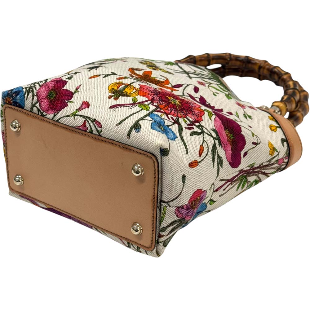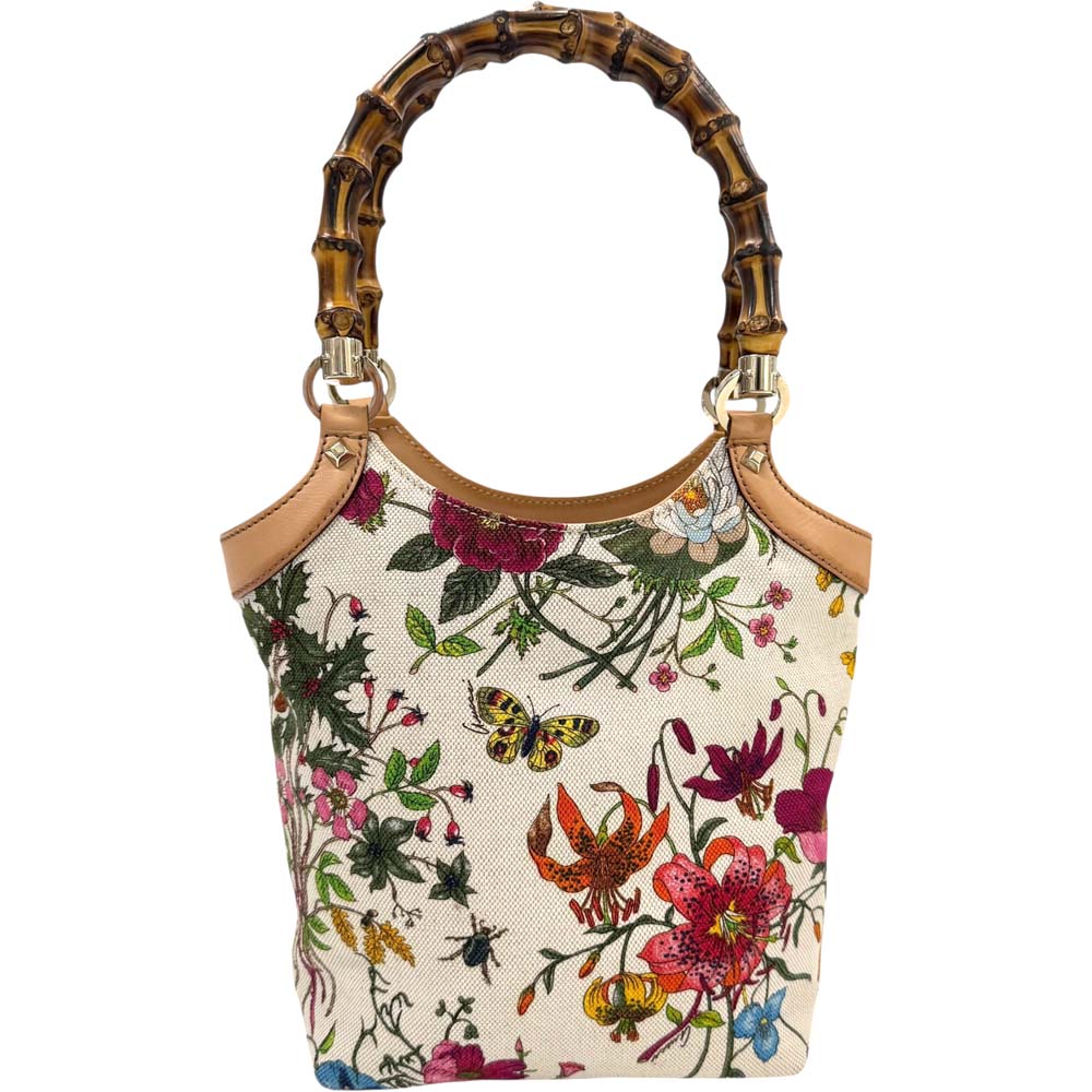 | 商品説明 | グッチのアイコニックなバンブーハンドルと色とりどりの花柄プリントが調和した、上品で華やかなハンドバッグです。キャンバスとレザーのコンビ素材が高級感を醸しつつも使い勝手の良さを両立し、日常から特別なシーンまで幅広く活躍します。コンパクトなサイズ感ながら内部には収納ポケットが備わり、実用性にも優れています。竹のナチュラルな質感がアクセントとなり、装いに柔らかな印象をプラスします。丁寧な仕立てと繊細なプリントがまとうたびに魅力を引き立て、長く愛されるデザインです。 |