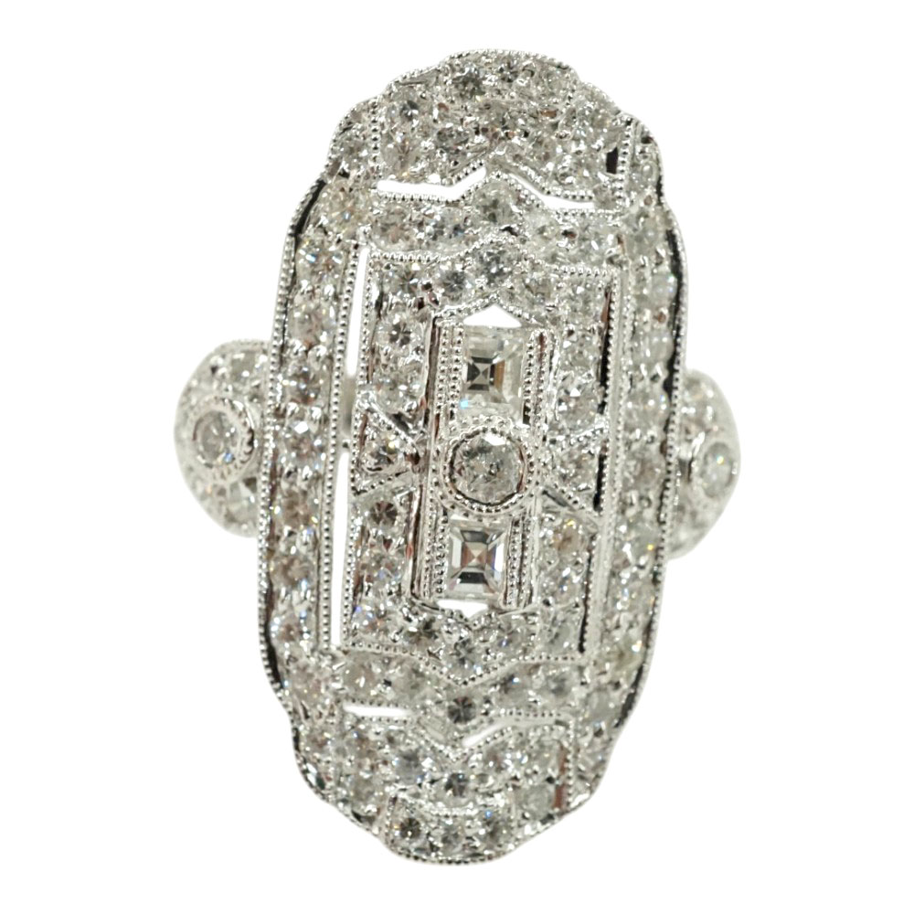 ダイヤモンドがきらびやかで豪華なデザインのリングです。 お手元のアクセントにぜひいかがでしょうか。