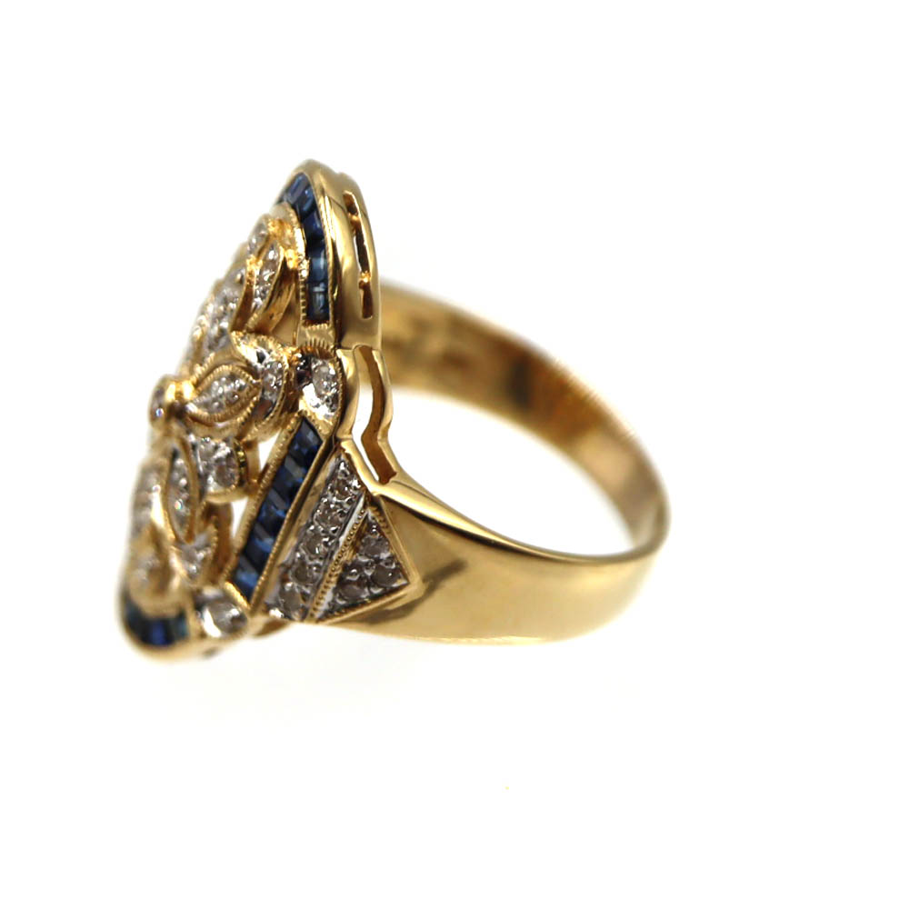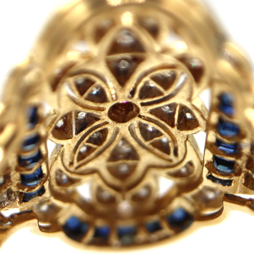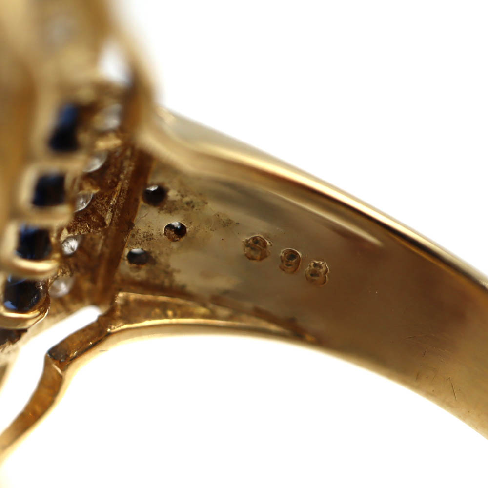 上質なK18(18金)を使用した、ブルーサファイアとダイヤモンドの華やかなリングのご紹介です。
