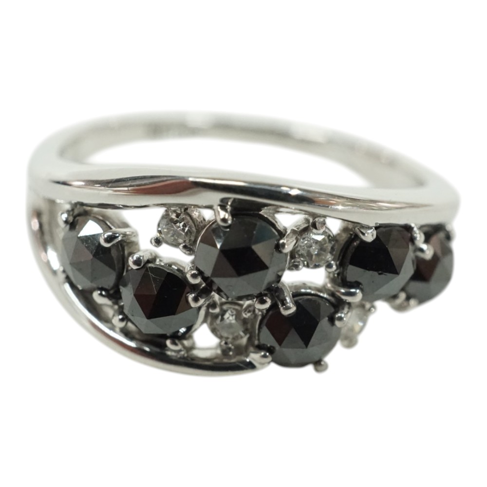 ブラックダイヤモンドが豪華にセッティングされた上品なデザインリングです。 指元のアクセントにおすすめです。 お探しの方はこの機会にぜひいかがでしょうか。