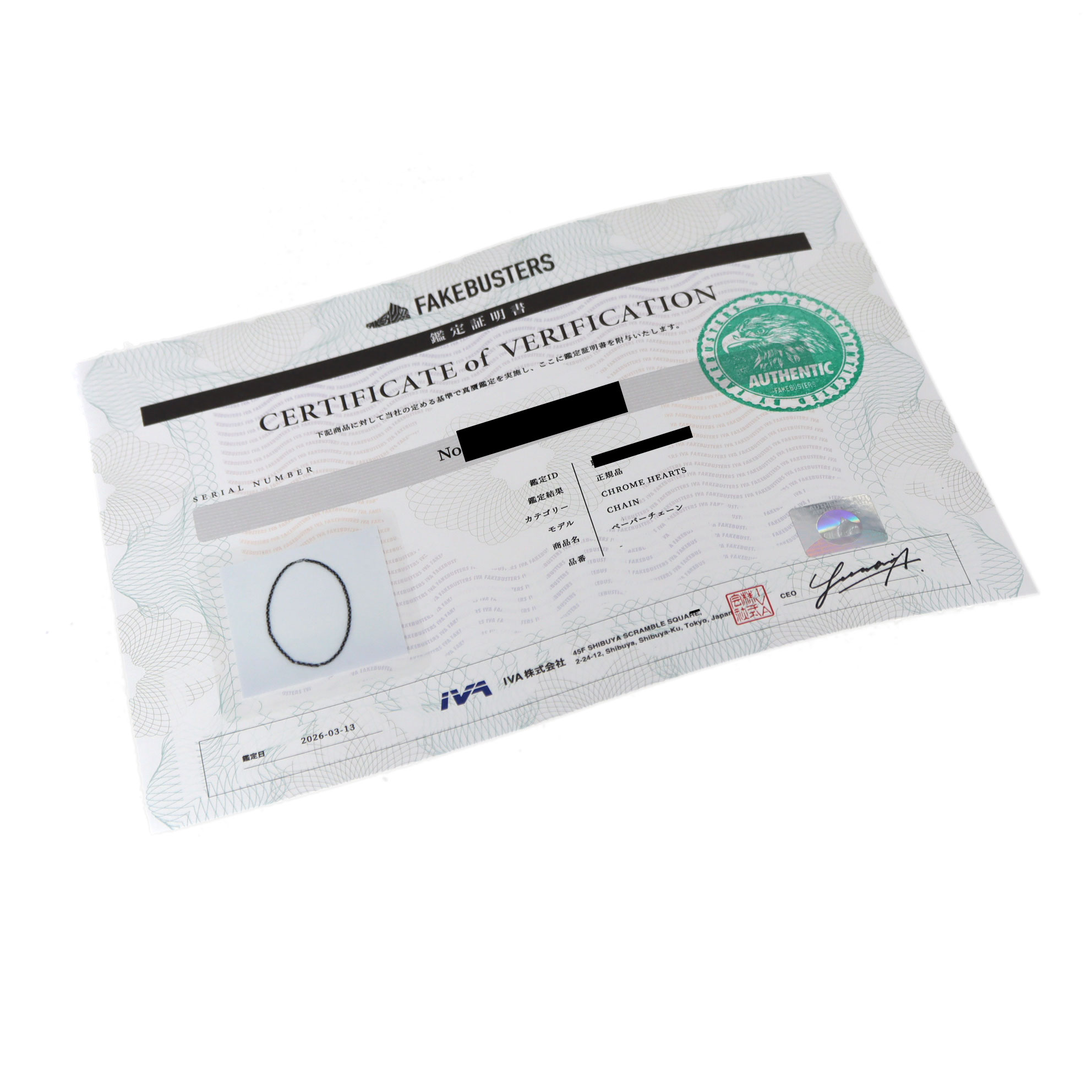 | 付属品 | フェイクバスターズ鑑定証明書/フェイクバスターズタグ |