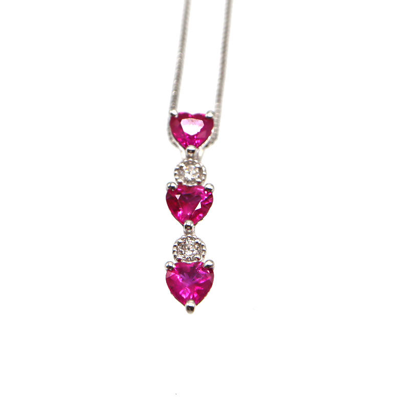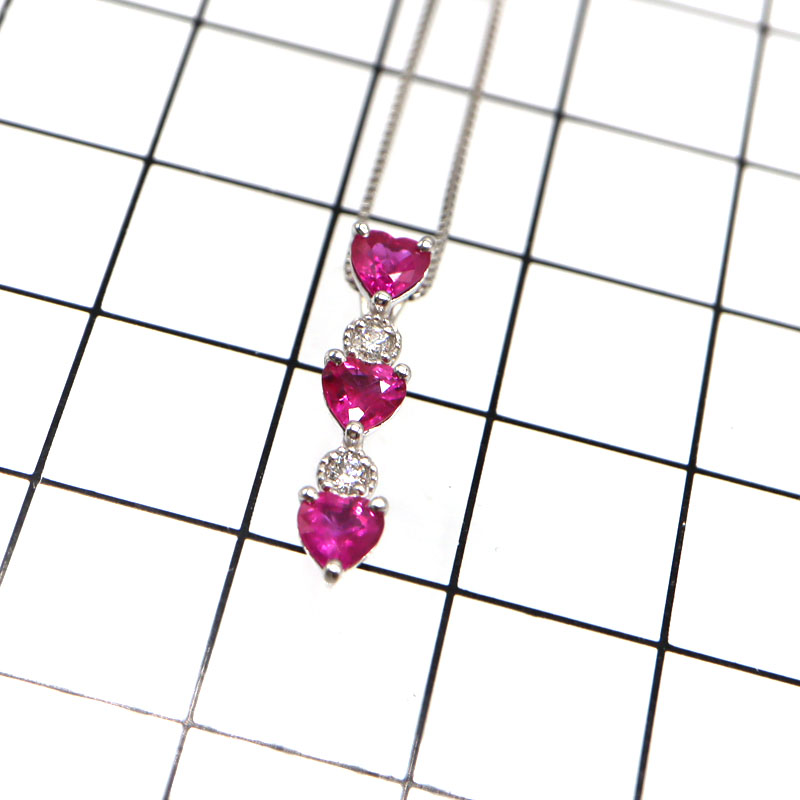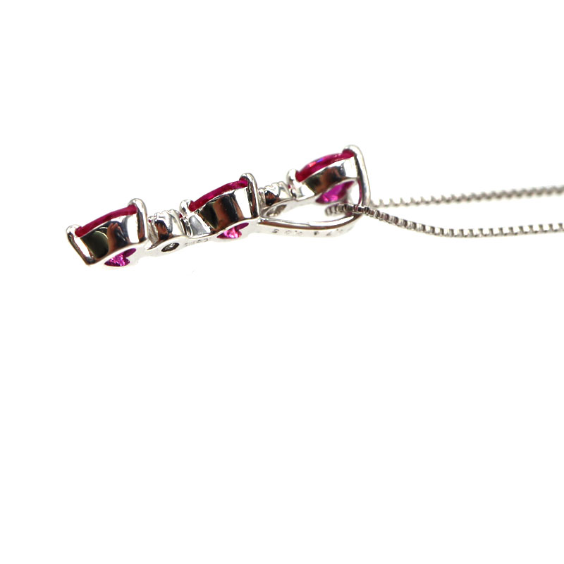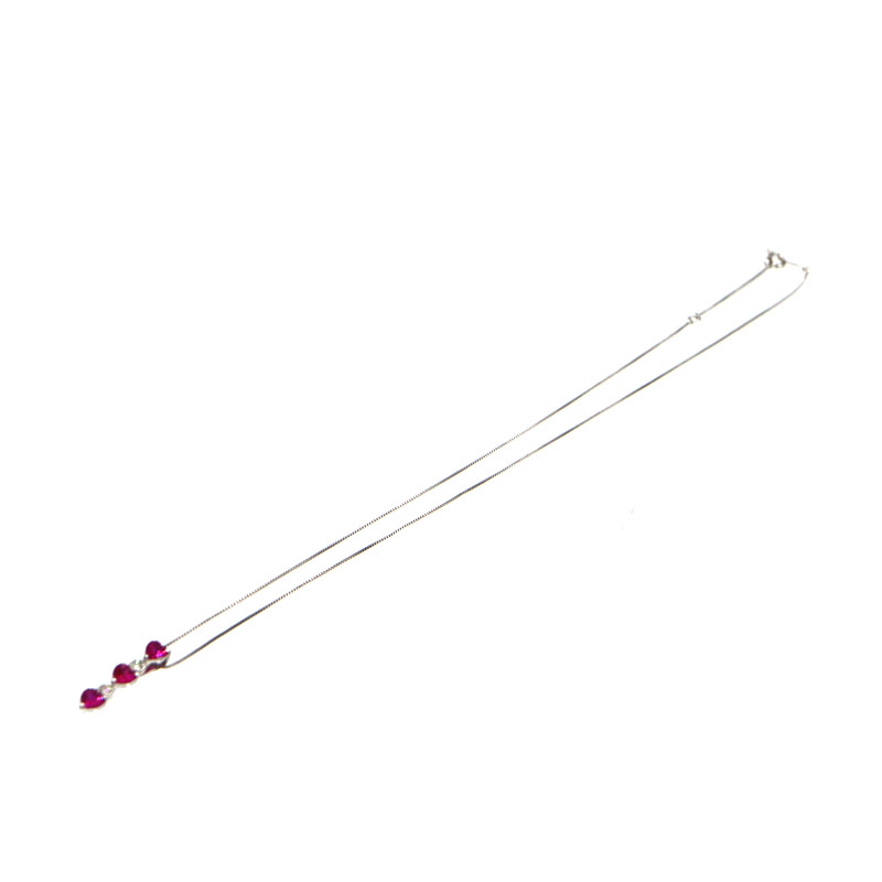 鮮やかなルビーが胸元で美しく輝く、K18ホワイトゴールドのネックレスです。