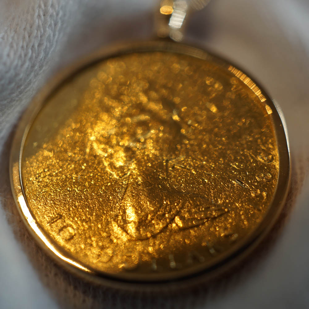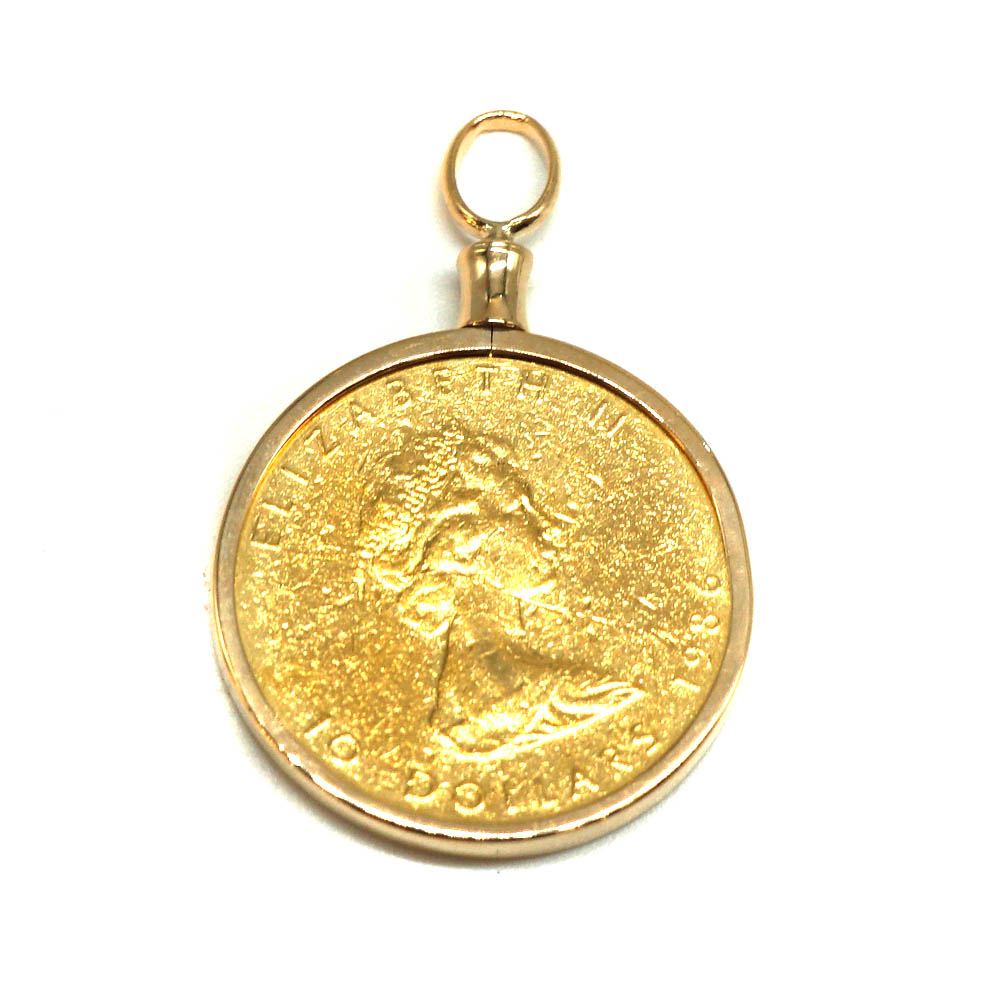 | 商品説明 | メイプルリーフコイントップのご紹介です。 エリザベス女王とメイプルの葉が描かれたコイントップです。 お持ちのチェーンに通して幅広くお使いいただけます。 この機会にぜひいかがでしょうか。