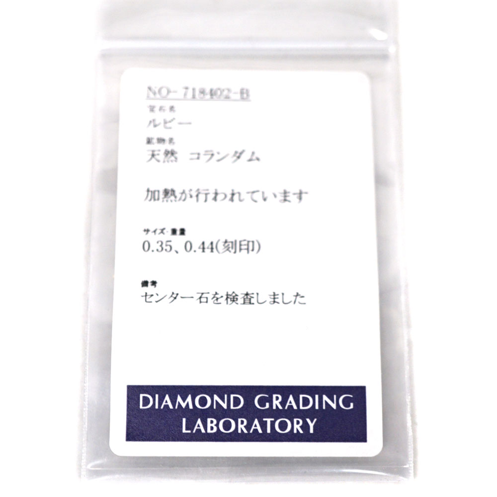 | 素材 | K18(18金ゴールド) Pt900(プラチナ) R0.35ct(ルビー) D0.44ct(ダイヤモンド) |