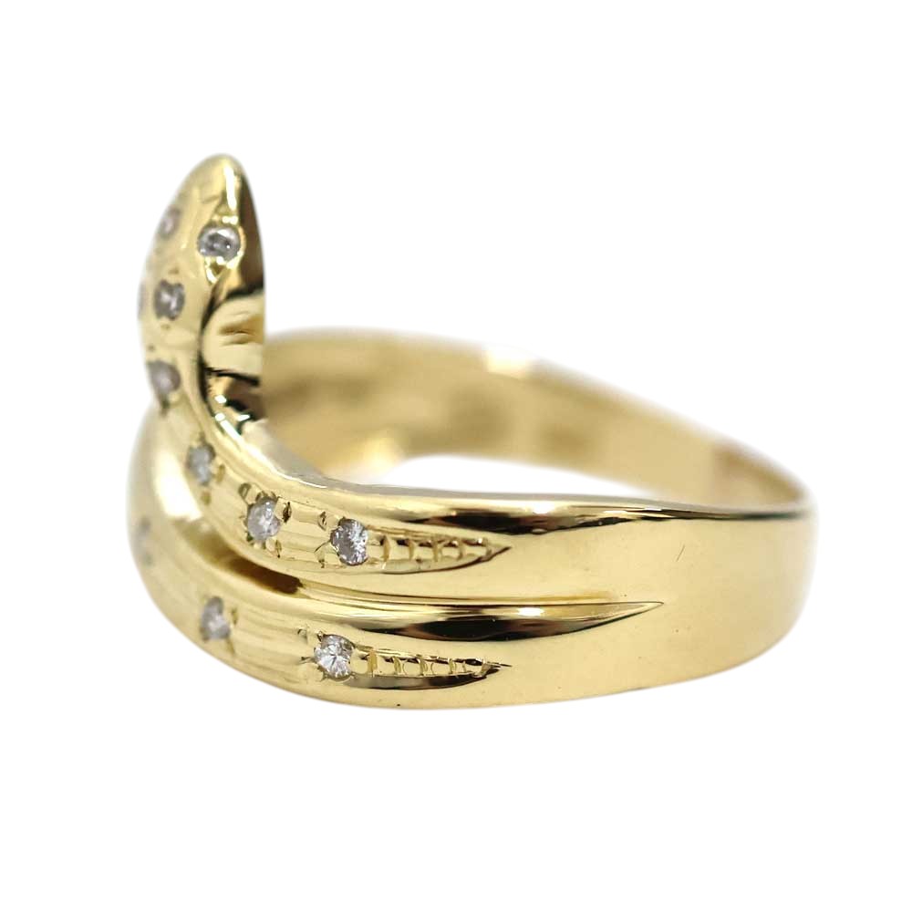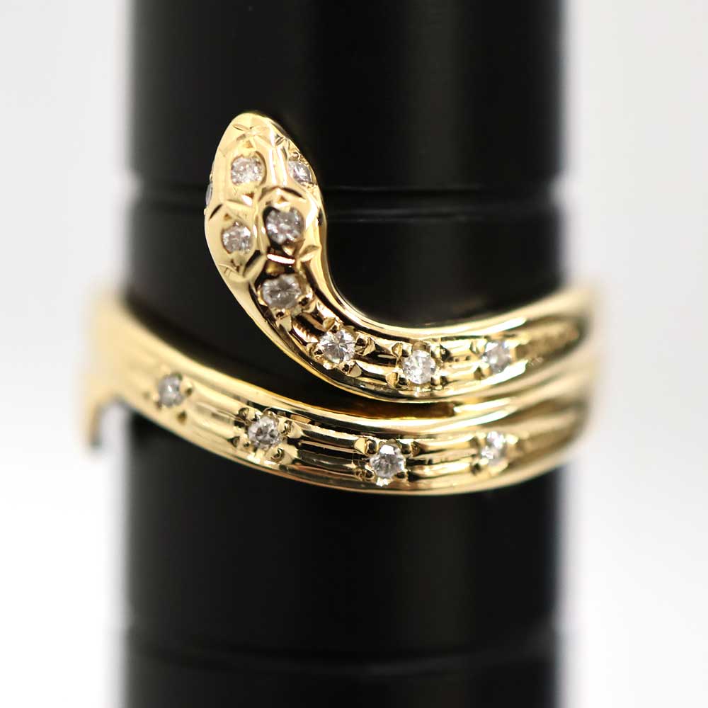 縁起が良いとされるスネークをモチーフとしたリングです。 アーム部分はカーブを描き、小粒のダイヤモンドが散りばめられています。 この機会に是非いかがでしょうか。