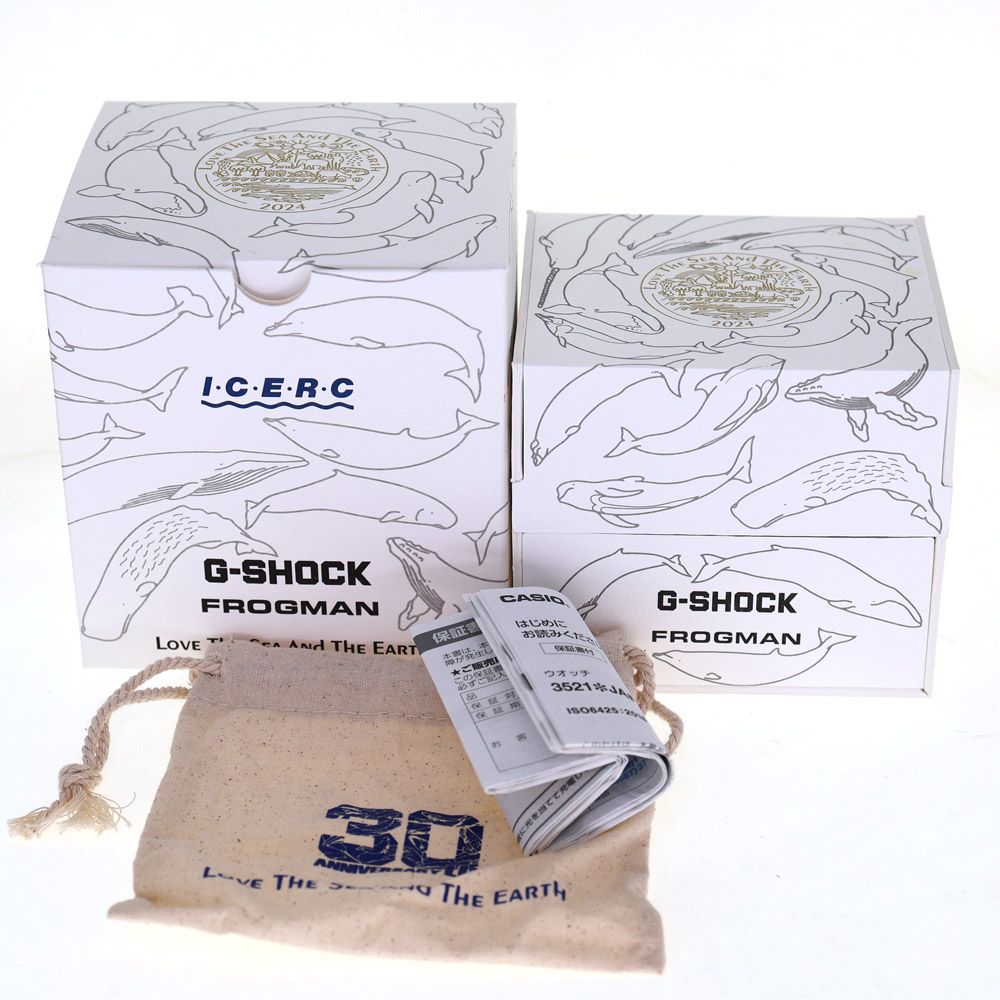 イルカ・クジラと自然の素晴らしさを伝える活動に取り組む「ICERC Japan」とのコラボレーション30周年記念モデルです。 2024年は、アニバーサリーイヤーを記念してバンドと液晶に30頭のクジラのイラストをデザイン。 随所にゴールドのアクセントカラーをあしらいました。