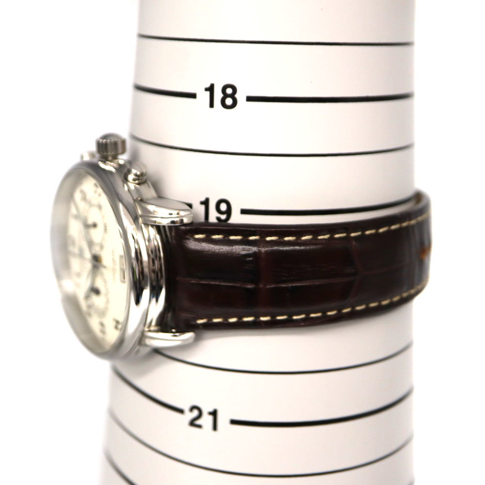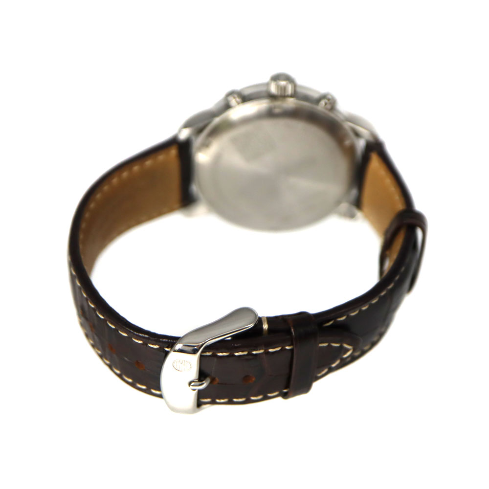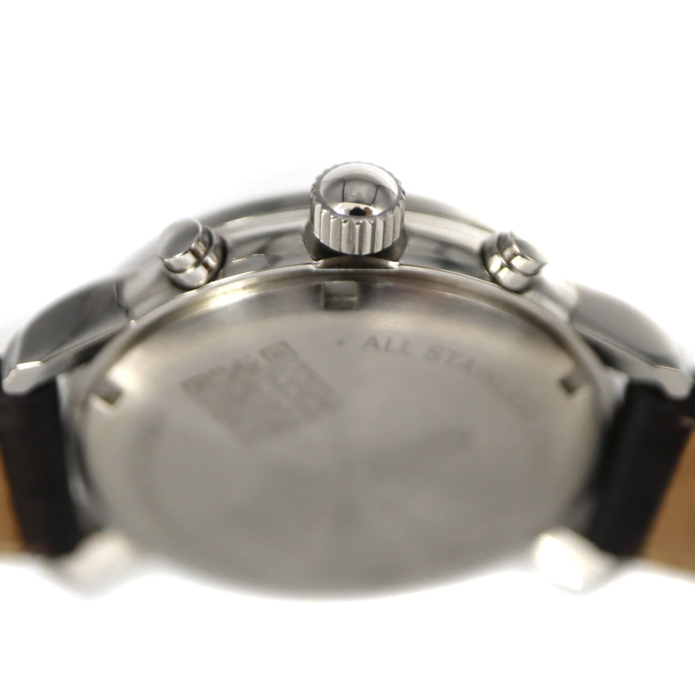 | 仕様 | 駆動方法:クオーツ キャリバー:- パワーリザーブ:- 精度:クオーツのため未測定 防水:5気圧防水 機能:クロノグラフ、デイト表示 |