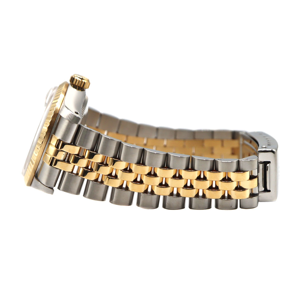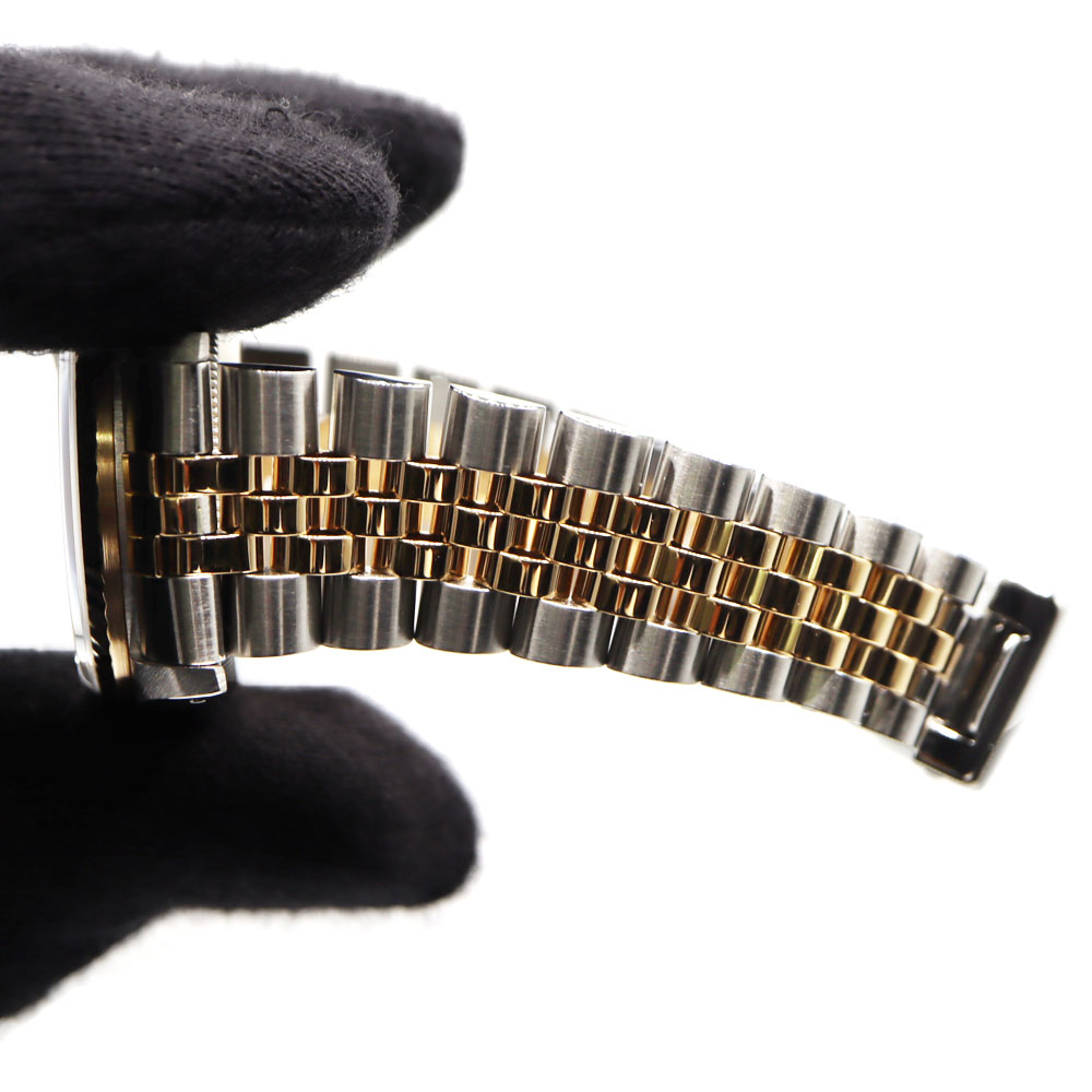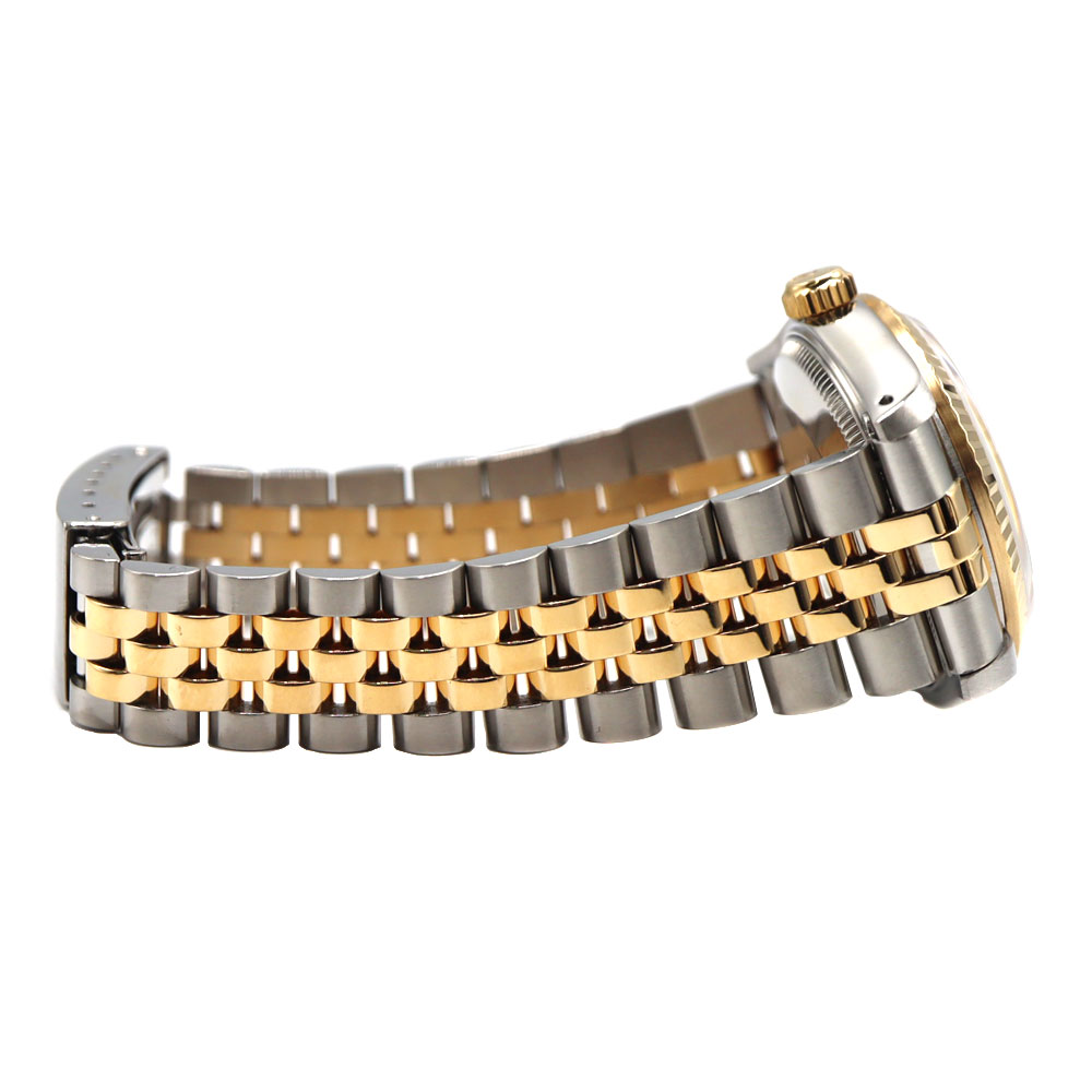 デイトジャストとは午前0時頃瞬時に日付が変わるデイトジャスト機構、全回転式ローターを搭載したパーペチュアル機構、ロレックス三大機構を搭載したモデルです。 美しいカッティングが施されたフルーテッドベゼルとブレスレット中央パーツに18Kイエローゴールドを使用したラグジュアリー感溢れるモデルですので、手元を華やかにしてくれます。