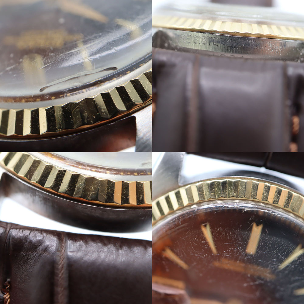■ケースサイドにキズがございます。 ■文字盤が経年劣化の為、変色がございます。 ■裏蓋に傷がございます。 ■文字盤に劣化がございます。 ■風防にかなりの傷がございます。 ■ベルトは社外品です。