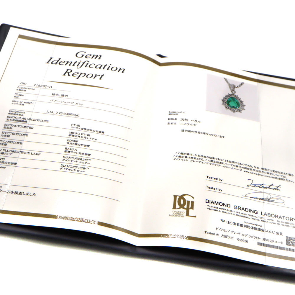 | 素材 | Pt850/トップPt900/エメラルド1.13ct/D0.76ctダイヤモンド |