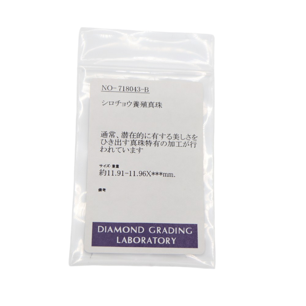 | 素材 | K18WG(ホワイトゴールド) パール(シロチョウ養殖真珠):約11.91~11.96mm ダイヤモンド:0.18ct |