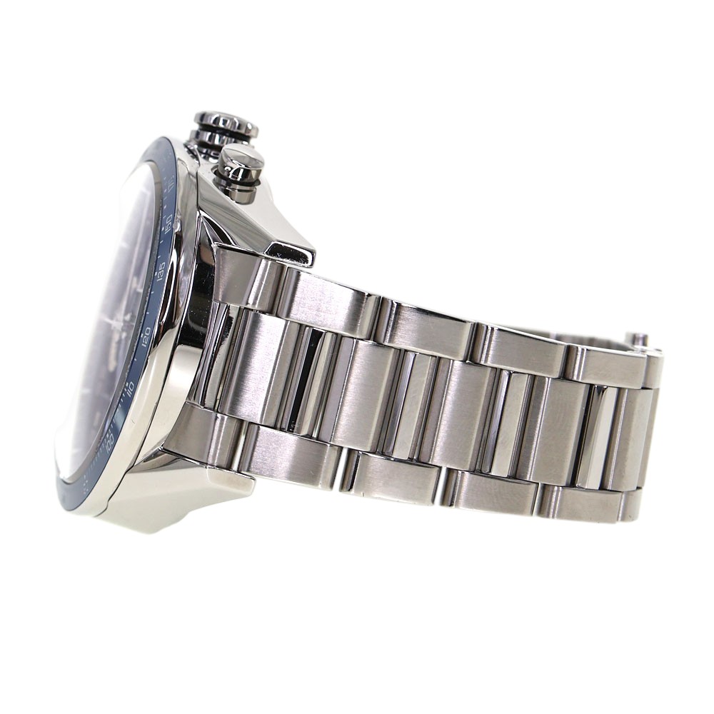タグホイヤーの伝統的なレーシングスピリットを体現した「カレラ」コレクションのクロノグラフモデル。 鮮やかなブルーのサンレイダイヤルと、タキメータースケールを備えたセラミックベゼルが印象的で、スポーティでありながら洗練された存在感を放ちます。