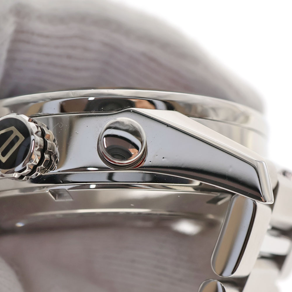 ケースは直径43mmのステンレススチール製で、力強さと高級感を兼ね備えた仕上がり。 3時位置にはデイデイト表示を備え、実用性も高い設計です。 この機会に是非いかがでしょうか。