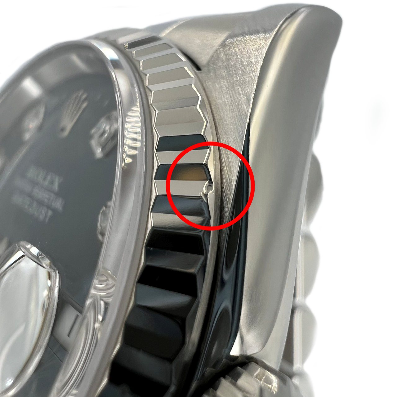 | 商品状態 | ■今回の販売にあたり、当店にて【OH】と【外装仕上げ】をさせて頂きましたが、研磨で取り切れなかった擦りキズ等はございます。 ■ベゼルの山部分に一部凹みがございます。 ■店頭でも販売中のため画像にない傷が付く場合が御座いますのでご了承下さいませ。 |