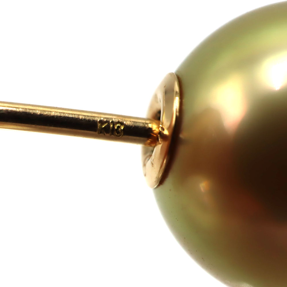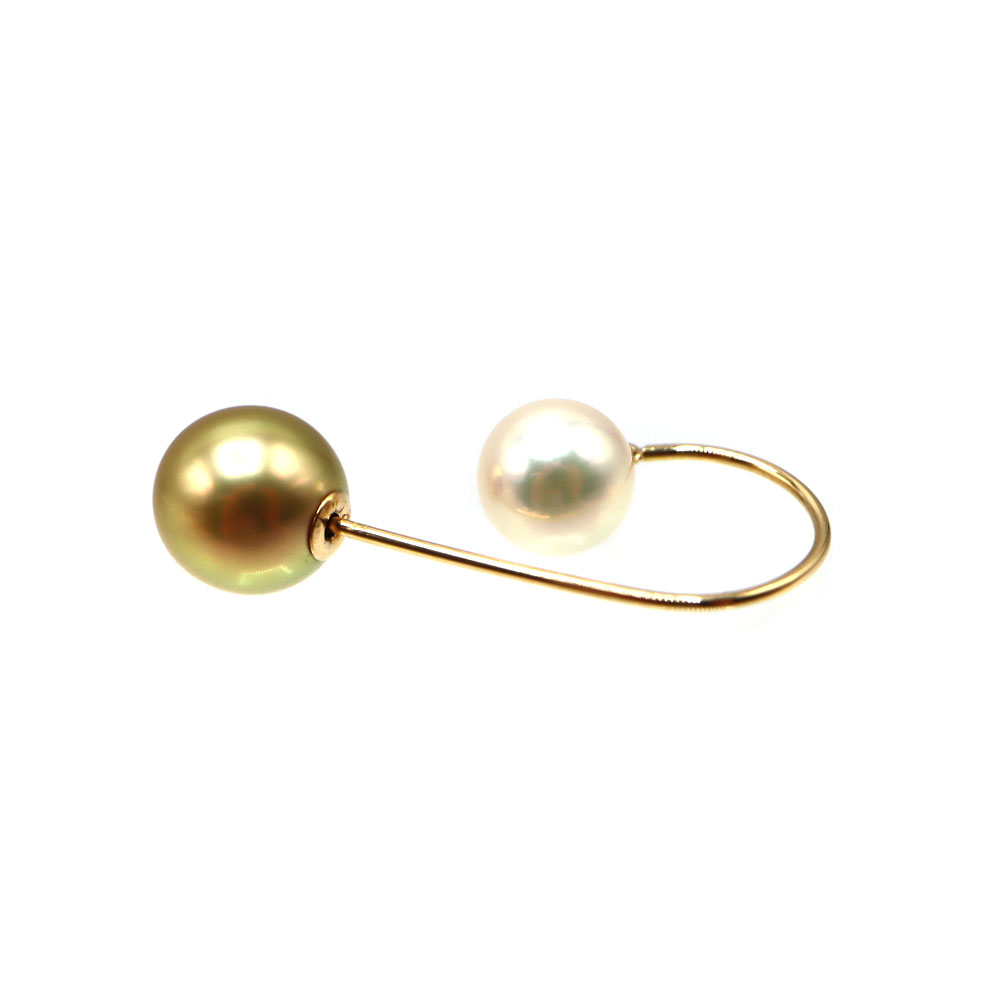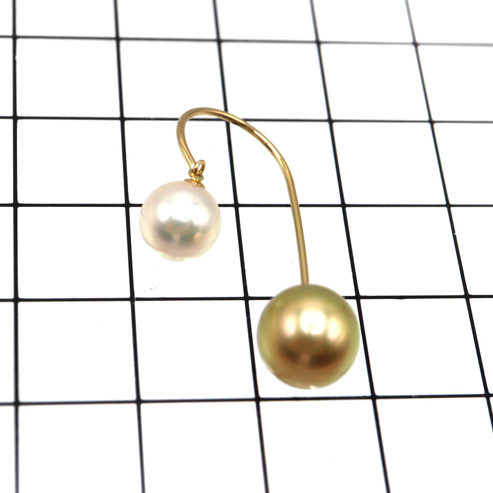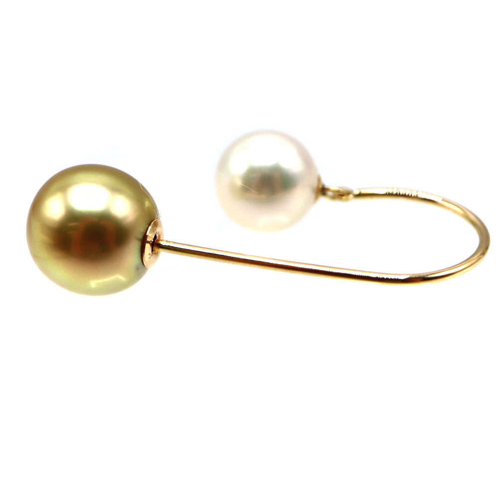 K18(18金)を使用した、アコヤ養殖真珠とシロチョウ養殖真珠を組み合わせたパールピアスです。