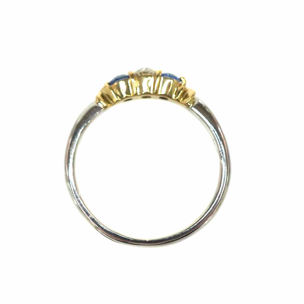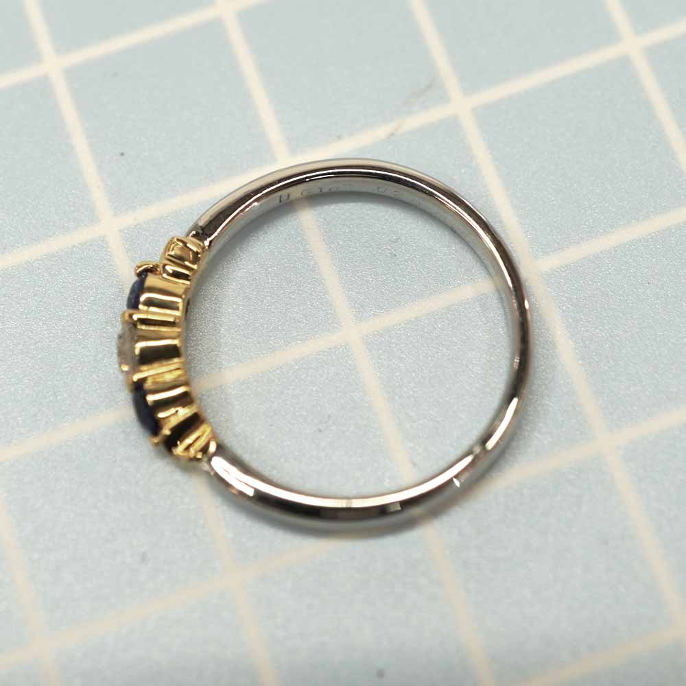 ゴールドとプラチナのコンビがゴージャスなアイテムです。 一粒のダイヤモンドと二粒のブルーサファイアがゴージャスで美しいリングです。 この機会に是非いかがでしょうか。