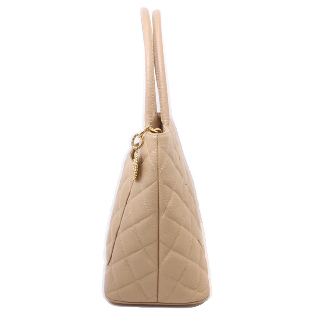 | 商品説明 | クラシックな魅力と実用性を兼ね備えた、永く愛される定番トート。 アイコニックなココマークが印象的で、シンプルながらも圧倒的な存在感を放つデザインです。上質なキャビアスキン(またはラムスキン)を使用し、美しい艶と高級感のある質感が魅力。日常使いにも耐えうる耐久性と、エレガントな雰囲気を両立しています。 開口部はマグネット仕様で、荷物の出し入れがしやすく実用性も抜群。マチがしっかりあり、収納力にも優れた設計で、通勤やお出かけなど幅広いシーンで活躍します。