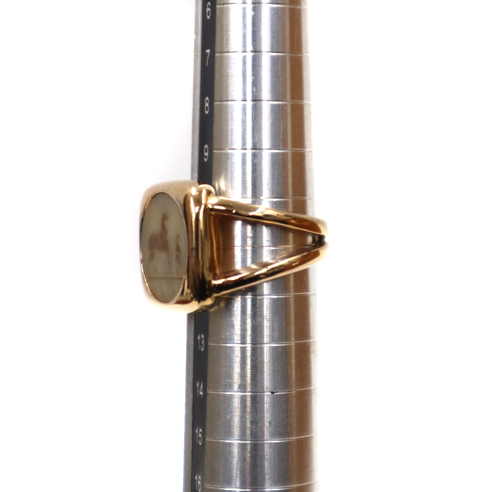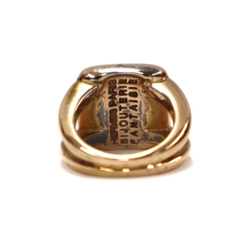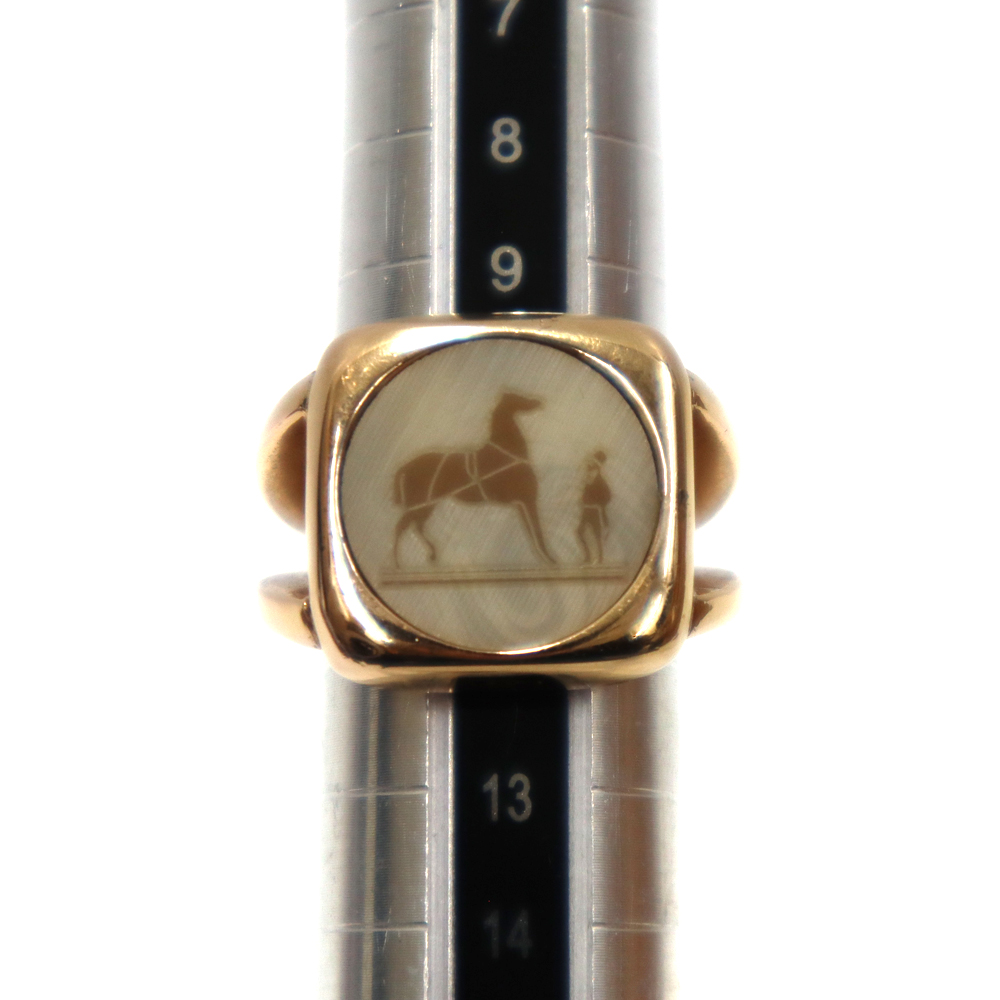 エルメスの象徴的なロゴモチーフ「セリエ」が描かれたマザーオブ・パール(黒蝶貝)のリングです。