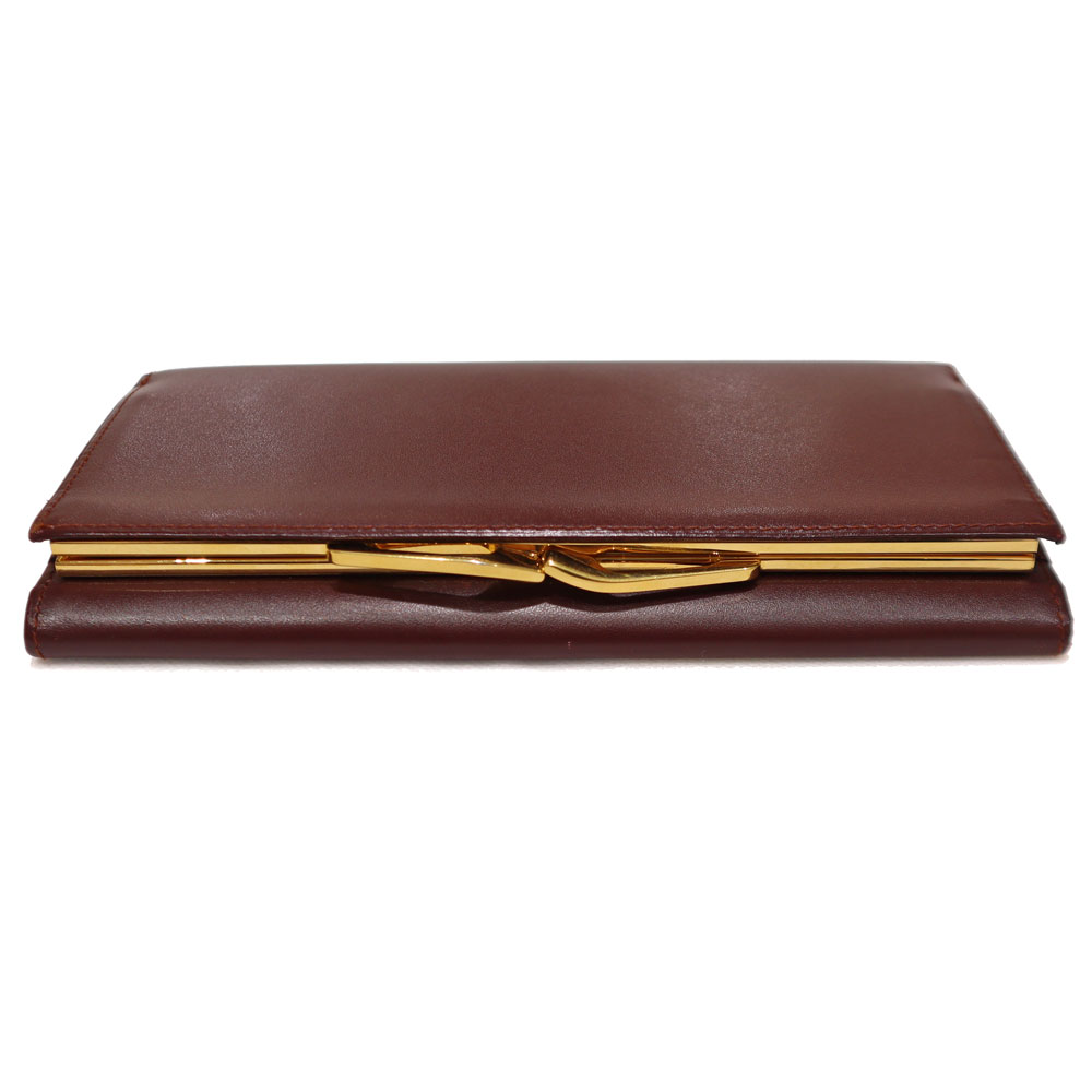 今回の長財布の特徴はデザイン。 上品なボルドーカラーにゴールドの金具が目を引き、正面には2Cロゴが映えます。 機能面では、背面に大きく開くがま口の小銭入れが特徴的。ポケットも豊富に備わっており、収納も差し支えありません。