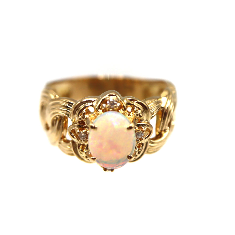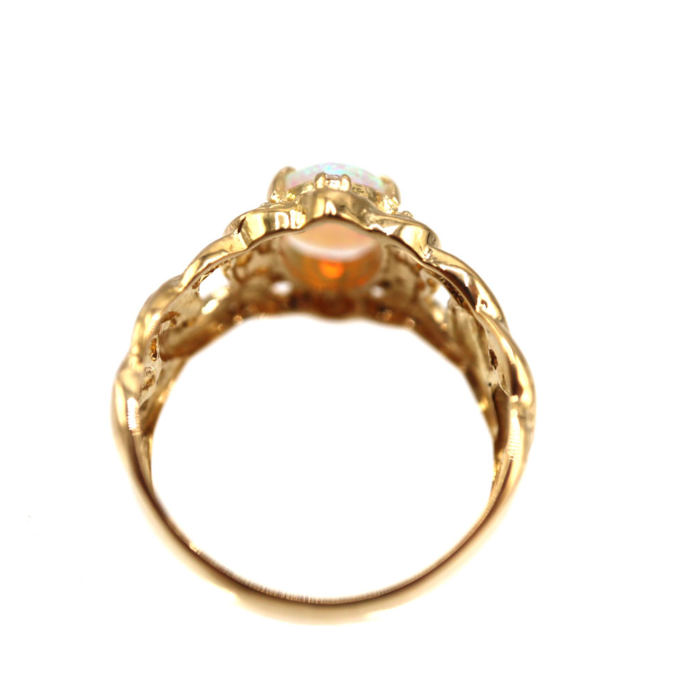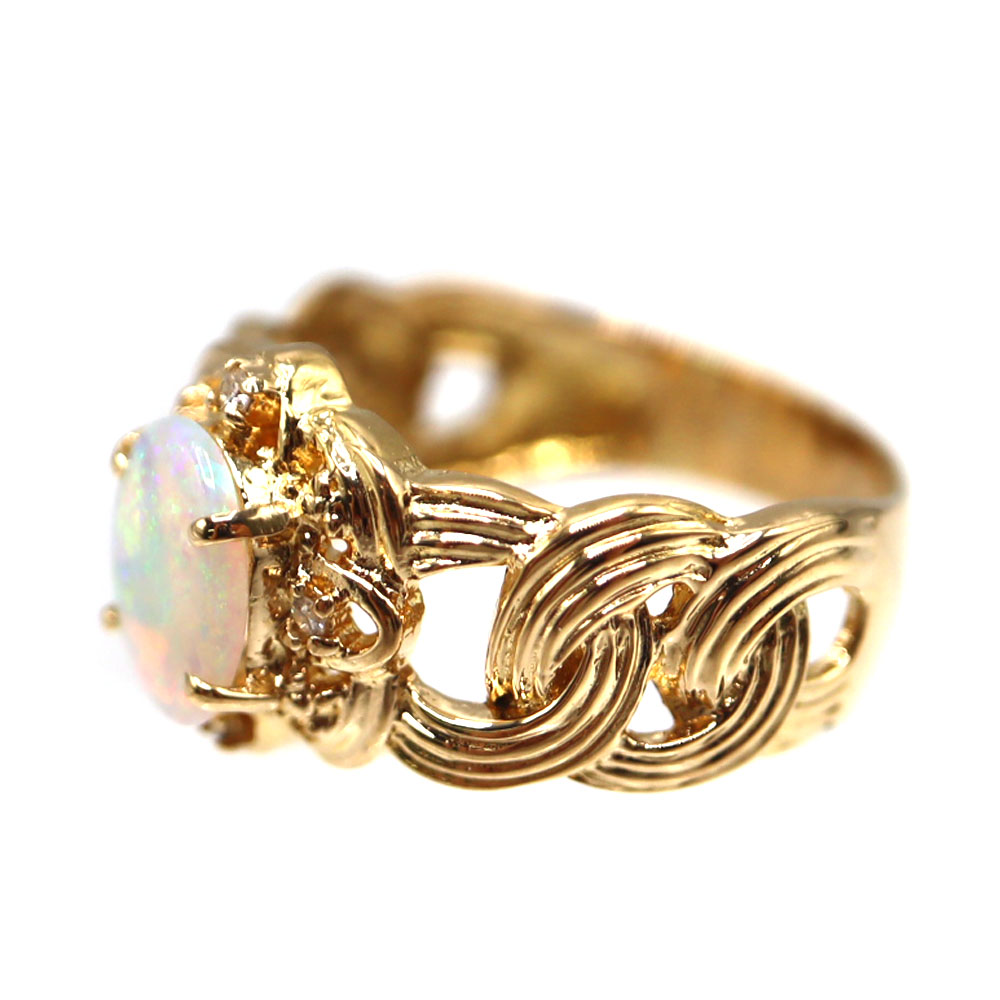 神秘的な遊色効果が魅力のオパールをあしらったリングです。