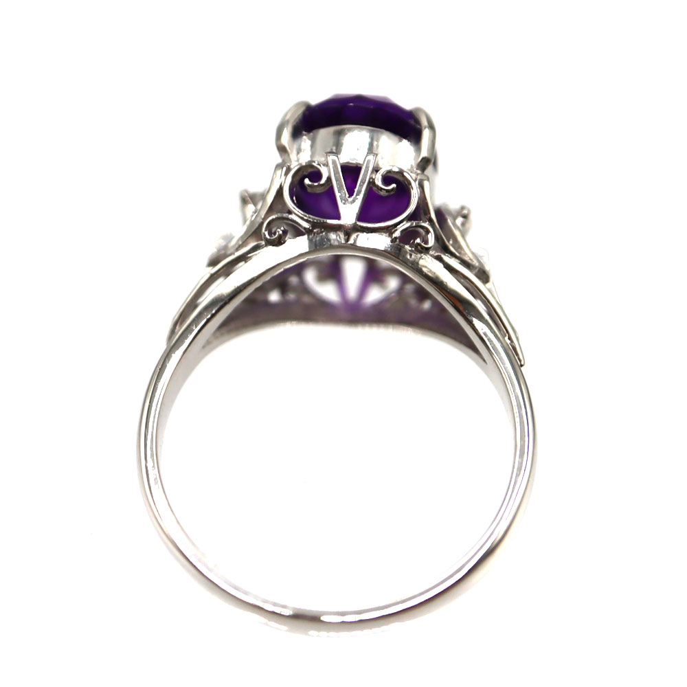 艶やかなアメシストをセンターに配した、華やかで上品なデザインのリングです。