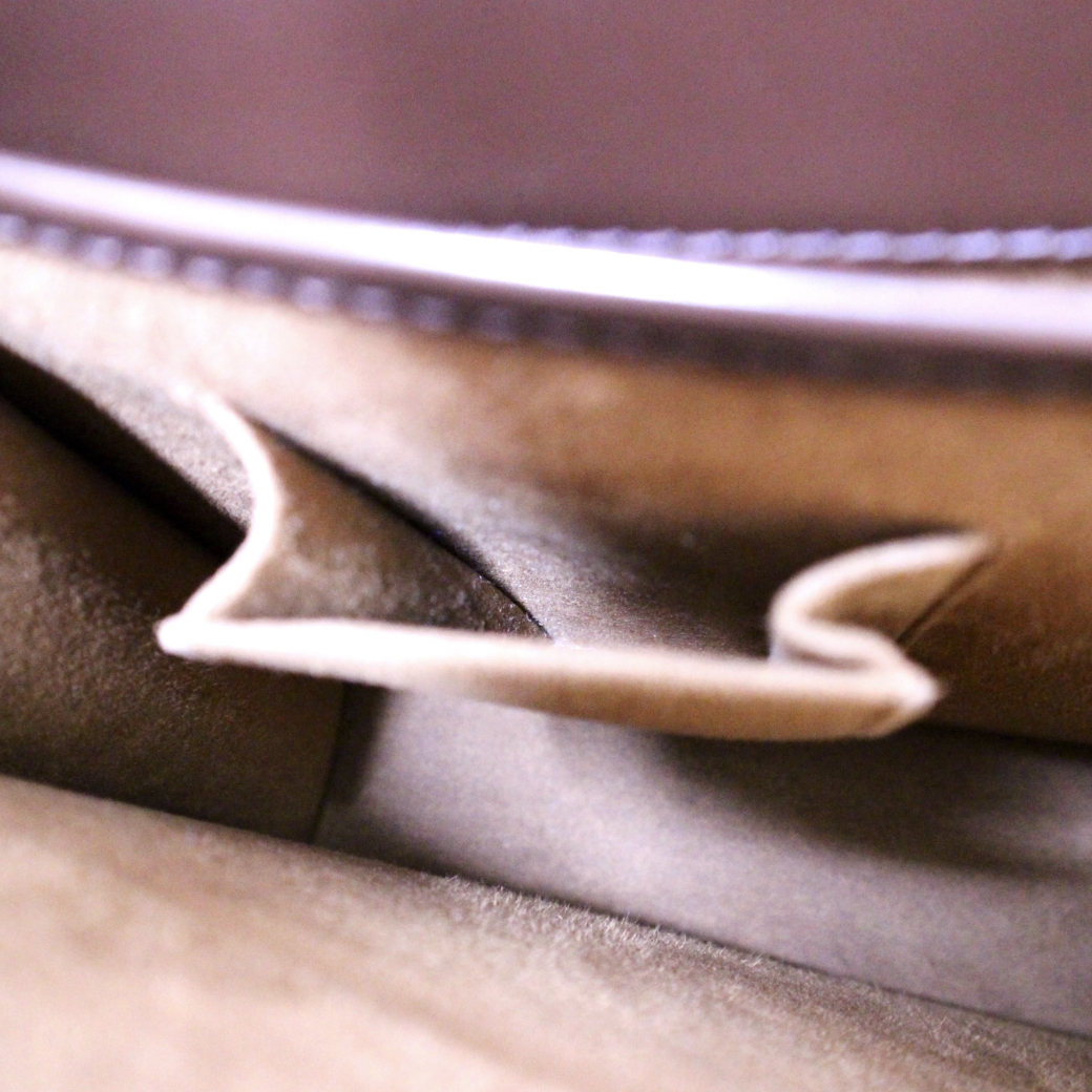 開閉はフラップ式+金具ロック仕様で、防犯性とクラシックな高級感を兼ね備えています。内側はシンプルな構造で、書類やビジネスツールをすっきり収納可能です。 ※尚、当サイトの販売金額より店頭での販売金額の方をお安く設定させて頂いております(一部のセール品などを除く)。予め、ご了承下さいませ。 |