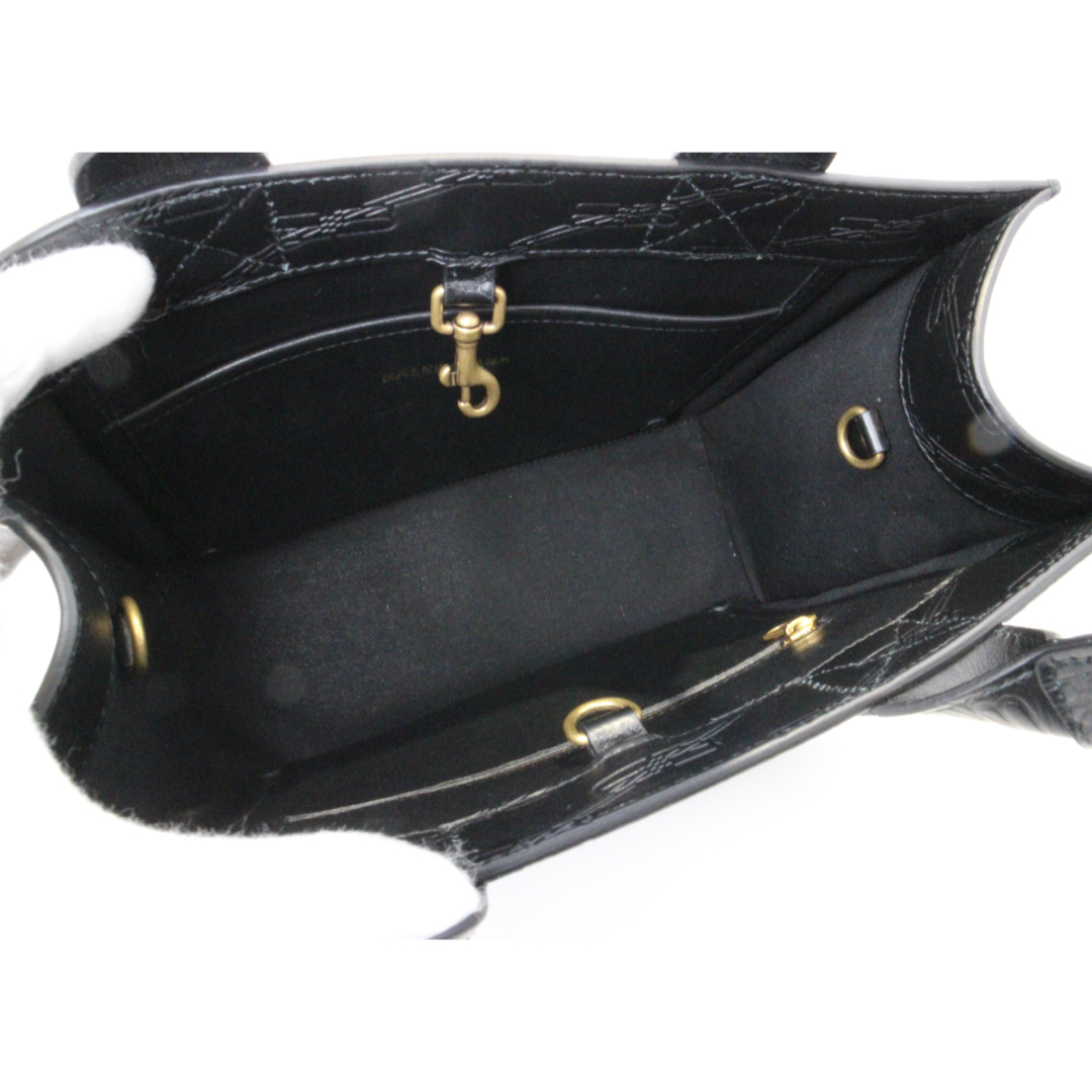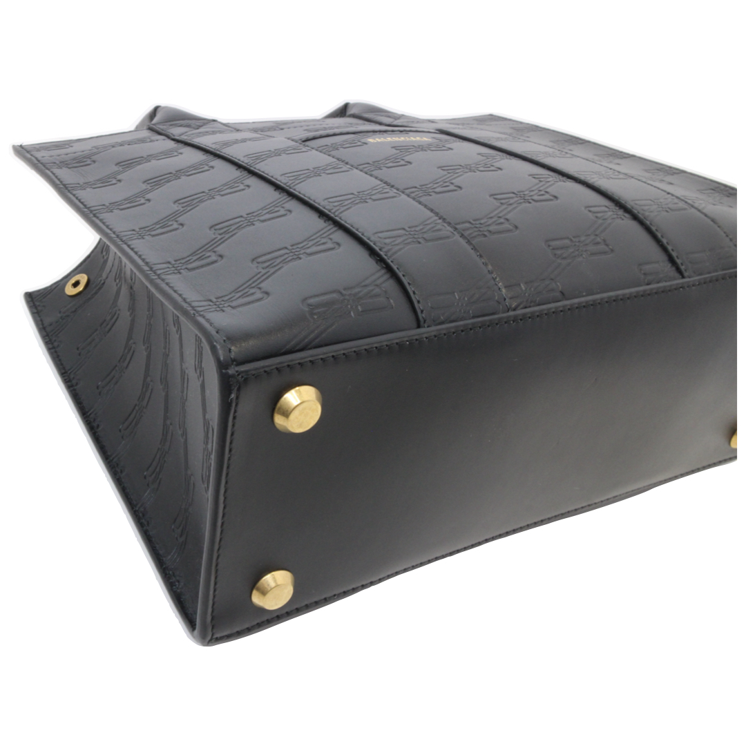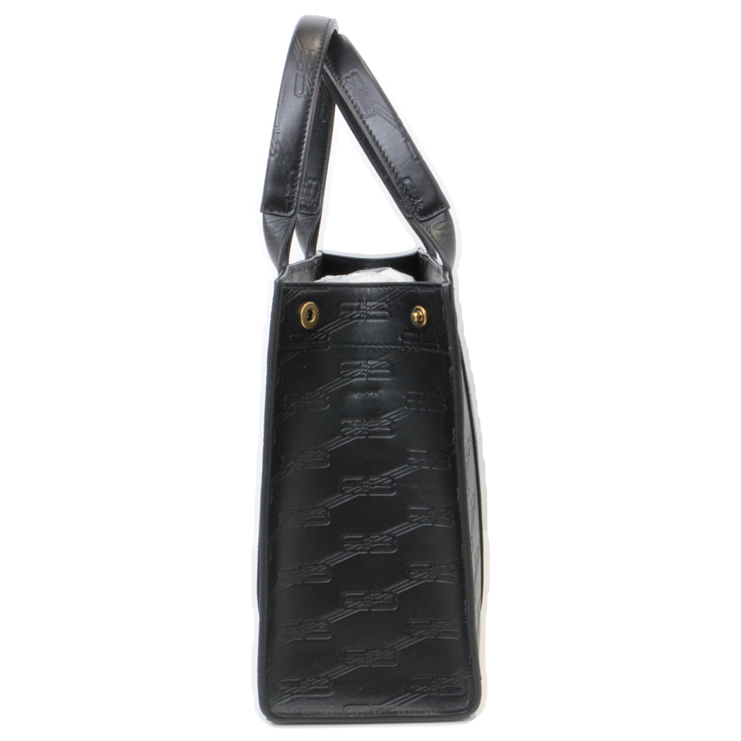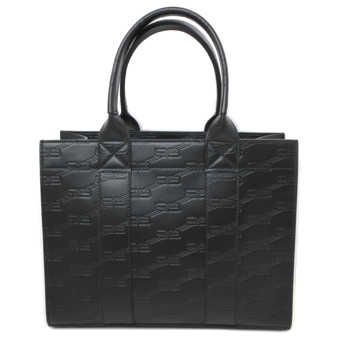 | 商品説明 | 洗練された存在感を放つ、BALENCIAGAの「BBモノグラム ハードウェア スモールトート(714187)」。 上質なレザーにアイコニックなBBモノグラムをあしらい、ミニマルでありながらも一目でそれとわかるラグジュアリーな佇まいが魅力です。フロントに配されたハードウェアが程よいアクセントとなり、シンプルな中にブランドらしいエッジをプラスしています。 コンパクトなサイズ感ながら、日常使いに必要なアイテムをしっかり収納可能。短めのハンドル設計により手持ちスタイルが美しく決まり、スマートで洗練された印象を演出します。カジュアルからモードまで幅広いスタイリングにマッチし、性別を問わず使用できるユニセックスなデザインもポイントです。