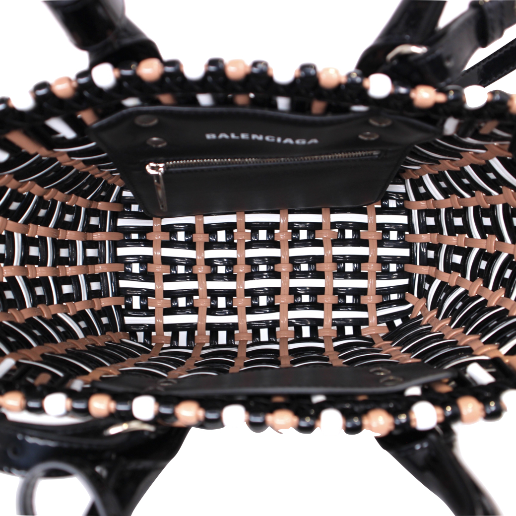 | 商品説明 | アイコニックなバスケットデザインをモダンに昇華した、BALENCIAGAの「ビストロ XS(671342)」日本限定カラー。 ツヤ感のあるエナメル素材を編み込み風に仕上げた独特のデザインが特徴で、ナチュラルなかごバッグの雰囲気と都会的なエッジを融合。軽量かつ耐久性に優れ、水にも強い実用性を備えています。 コンパクトなXSサイズながら、マチのある設計で日常の必需品をしっかり収納可能。短めのハンドルによる上品な手持ちスタイルに加え、取り外し可能なショルダーストラップ付きで、シーンに応じて肩掛けや斜め掛けも楽しめる2WAY仕様です。 日本限定カラーならではの配色は、スタイリングのアクセントとしても存在感抜群。カジュアルからモードまで幅広いコーディネートにマッチし、ユニセックスで楽しめるデザインに仕上がっています。