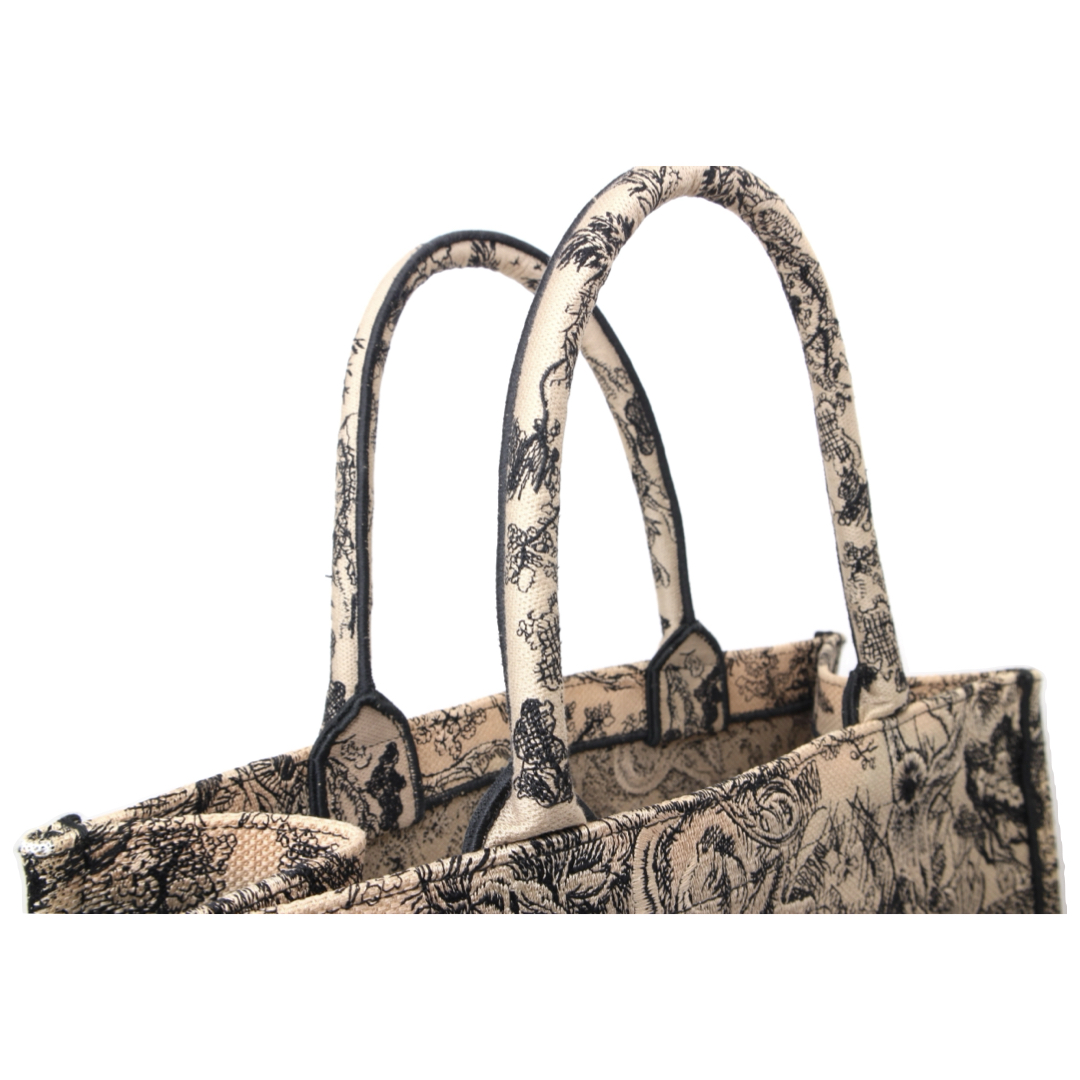 | 商品説明 | 芸術的なプリントデザインが魅力の、DIOR「ブックトート ミディアム トワルドゥジュイ」。 ブランドを象徴するブックトートに、伝統的なフランスの図案「トワルドゥジュイ」を全面にあしらった華やかなデザインが特徴。繊細なジャカード織で表現された柄は、風景や動植物をモチーフにしたクラシカルな世界観を描き出し、持つだけでアートピースのような存在感を放ちます。 ミディアムサイズは日常使いに最適なバランスで、A4サイズや必需品をしっかり収納できる実用性を備えながら、軽やかで持ちやすいシルエットを実現。開口部の広いトート構造により、荷物の出し入れもスムーズです。 ハンドキャリー専用の設計により、シンプルながらも洗練された佇まいを演出。カジュアルからエレガントまで幅広いスタイルに馴染み、コーディネートの主役としても活躍します。