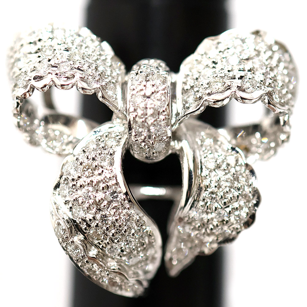 大振りのリボンをモチーフとした豪華なリングになります。 こちらひとつでお手元が華やかになりますよ。 この機会にぜひいかがでしょうか。