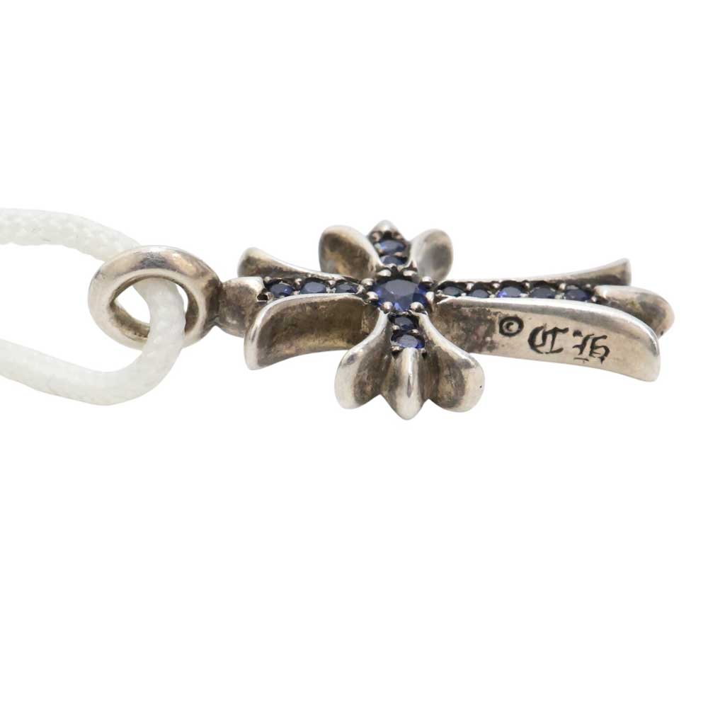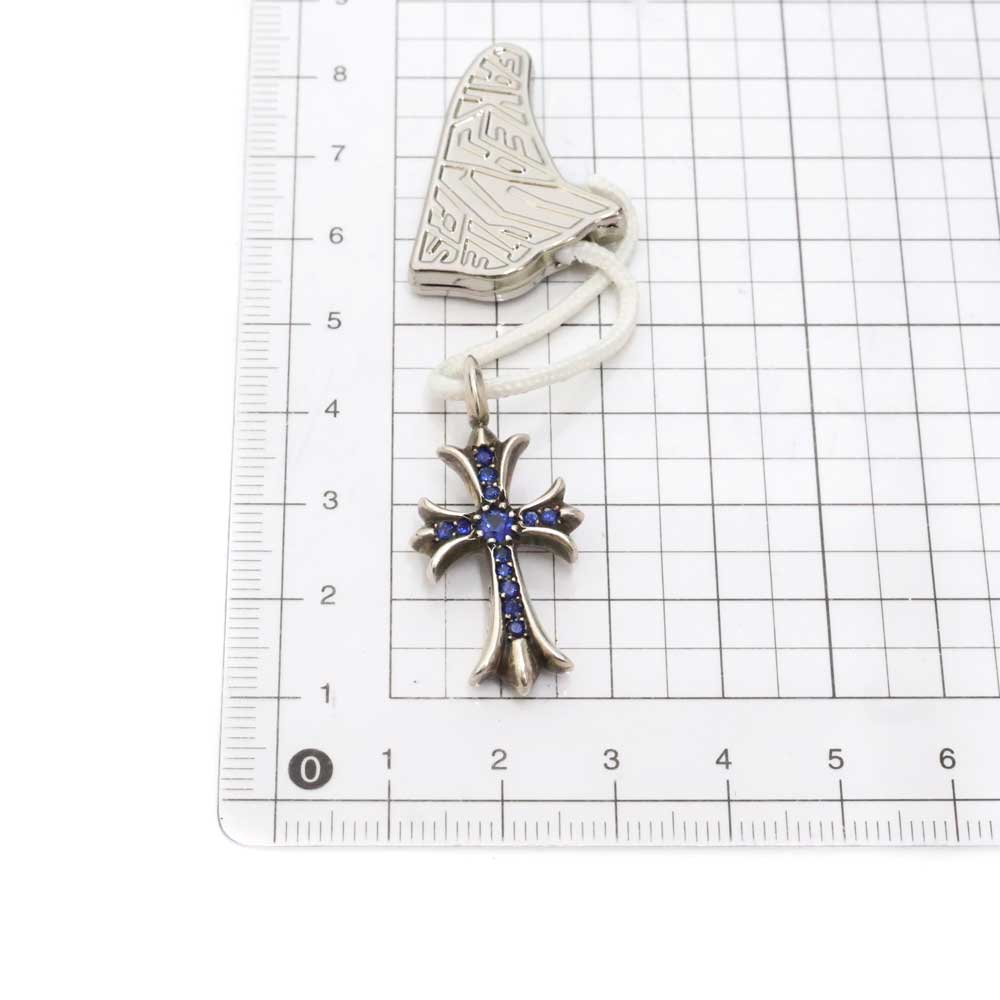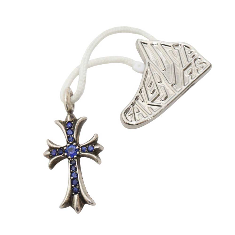 クロムハーツの定番人気モチーフのひとつであるタイニークロスチャームとなっております。 表はサファイアがはめ込まれ、裏側がシンプルなシルバー地のデザイントップです。 お手持ちのチェーンと合わせてお使いいただけます。 この機会に是非いかがでしょうか。