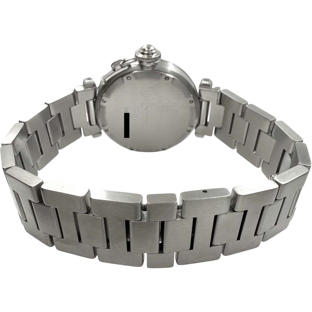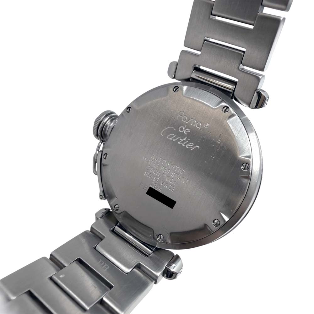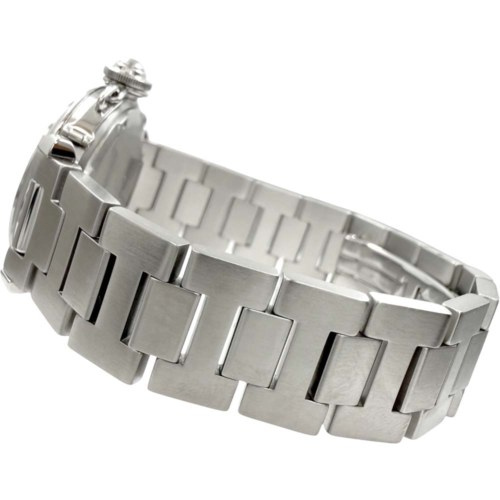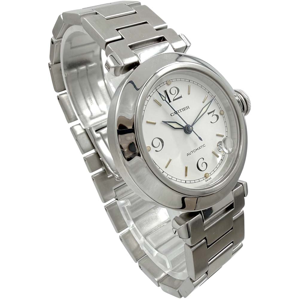 | 商品説明 | カルティエの「パシャC デイト」モデルW31015M7は、ステンレススチール製のケースとブレスレットを備えた機械式腕時計です。リューズガードとゴールドのバーインデックスがデザインの特徴です。また、ホワイトの文字盤には日付表示機能があり、視認性が高く、シンプルでエレガントな仕上がりとなっています。